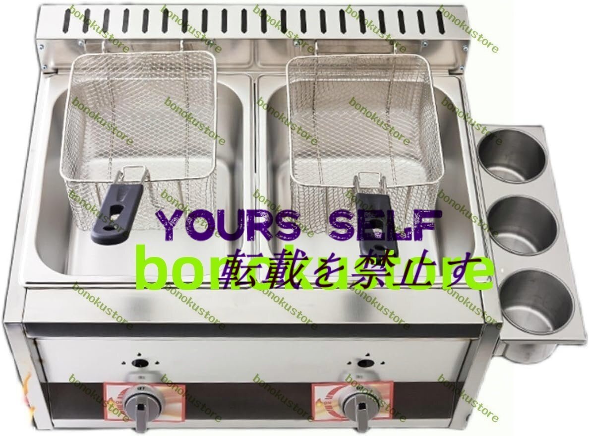 Tonain大型 ガスフライヤー,LPガス用プロのガスフライヤー、10L * 2バスケットと蓋付業務用家庭用キッチン用金属管付きステンレス鋼カウンタートッププロパン厨房機器 揚げ物 フライドポテト、ポップコーン 温度調整機能 簡単に掃除できデスクトップフライヤー 業務用フライヤー (55*44*34cm シルバー)