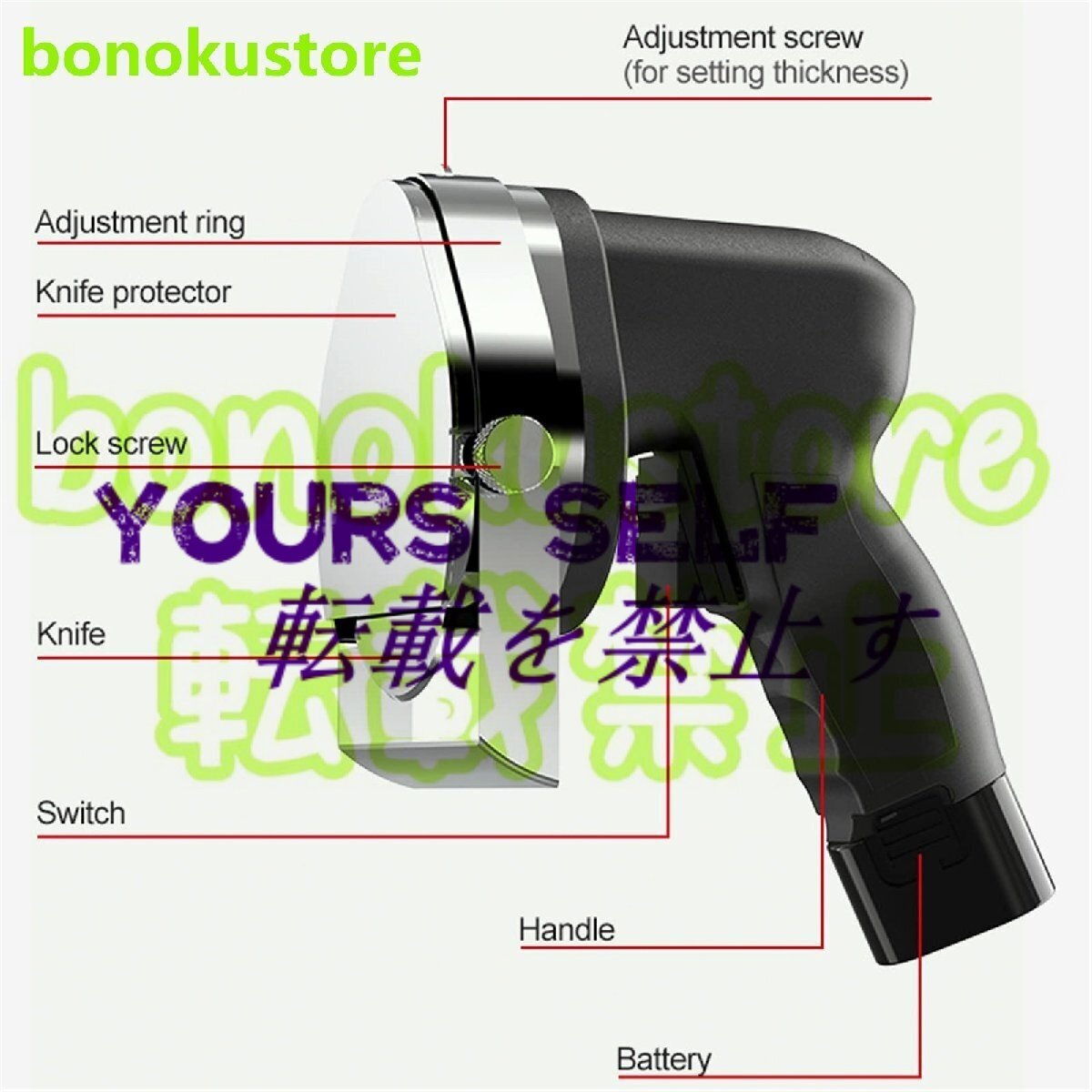 【スライサーの厚さ調節可能】上部のネジを調整することで、カット厚さを0~3インチ(0~8mm)まで調整可能で、ご要望にお応えします。 ?コードレス&耐久性: 2500mahの大容量充電式バッテリーを搭載し、ワイヤレスでポータブル、長時間の作業、屋外での使用に便利です。 強