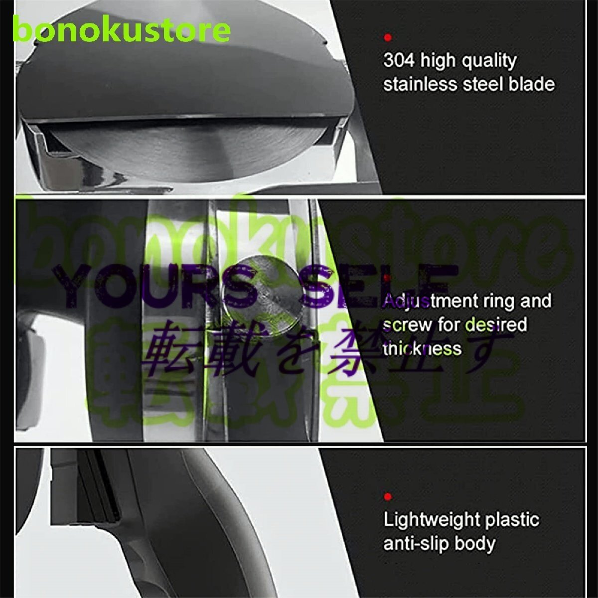 【スライサーの厚さ調節可能】上部のネジを調整することで、カット厚さを0~3インチ(0~8mm)まで調整可能で、ご要望にお応えします。