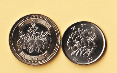 新500円バイカラー・クラッド貨幣、桜100円白銅貨