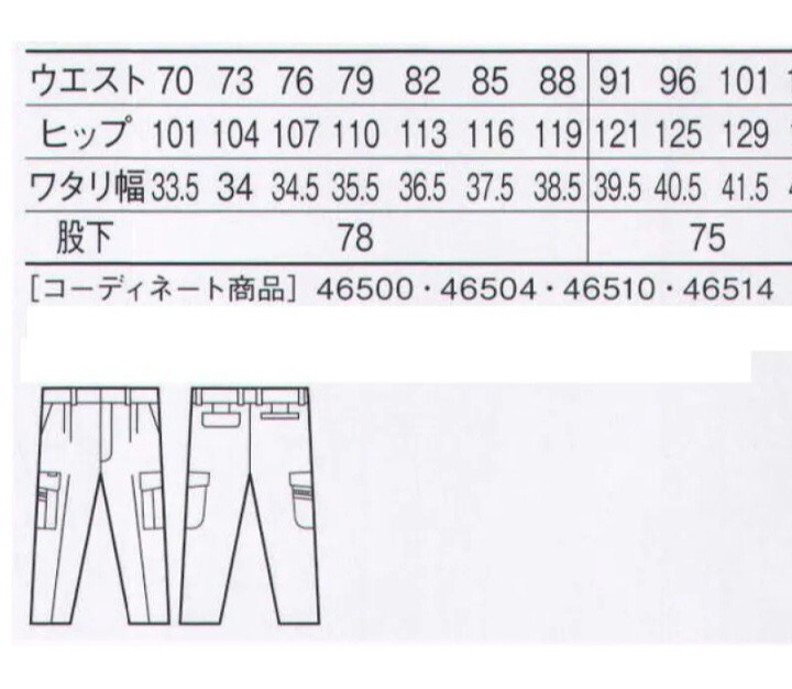 3852 自重堂|エコツータックカーゴパンツ|46502|ソフトブルー|W76㎝×2本|春夏|新品未使用|作業ズボン|作業服|水色|Jichodo|帯電防止|