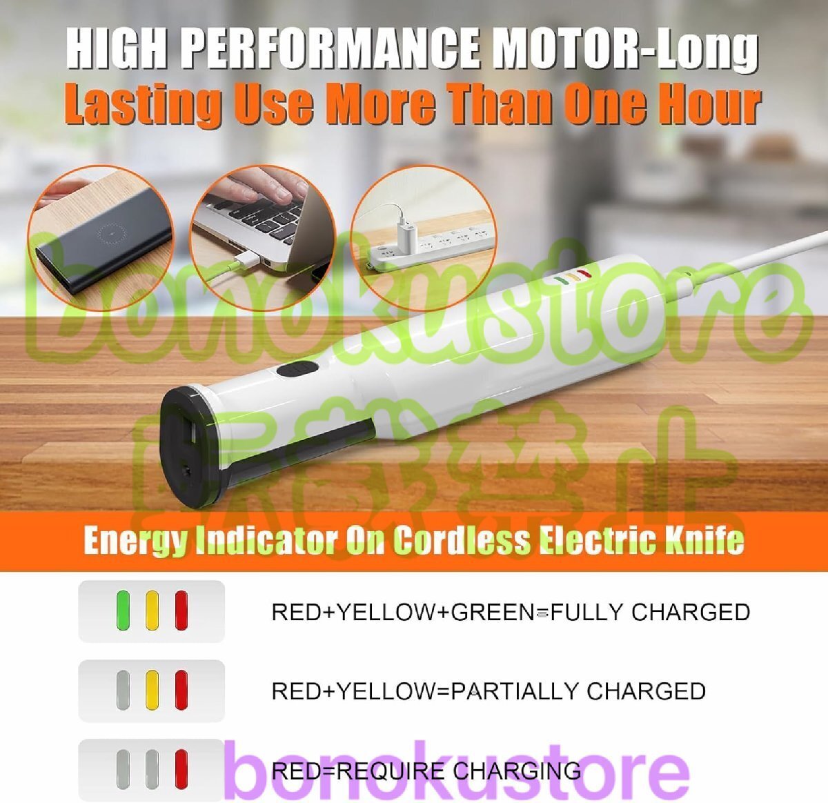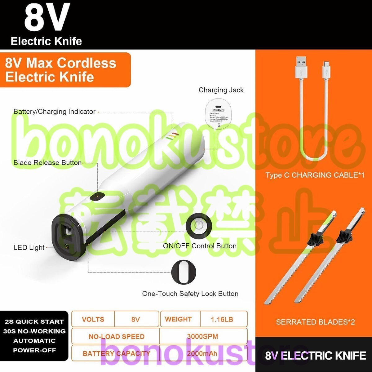 仕様: 色: ホワイト 刃長:8.5 安全ロックボタン: はい 食器洗い機対応: はい ボルト: 8V バッテリー容量: 2000MAH 無負荷速度: 3000SM パッケージ内容: 1×彫刻ナイフ