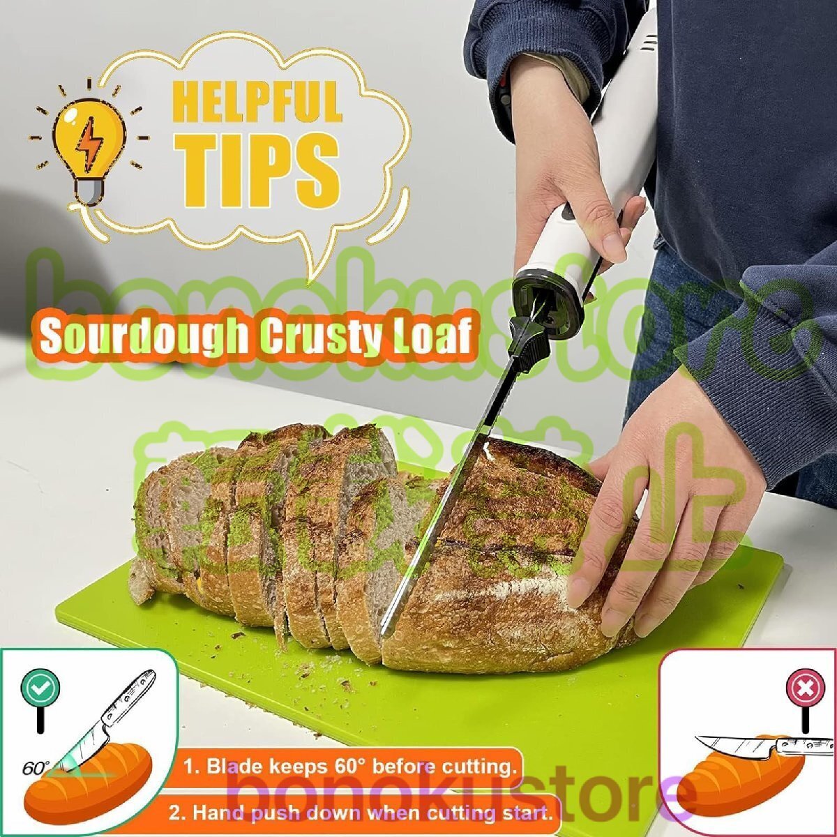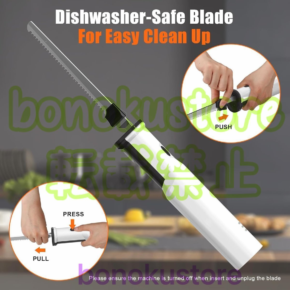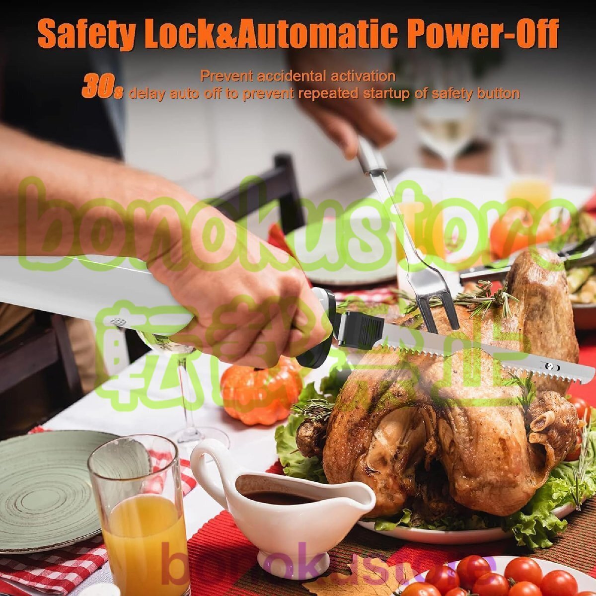 【多機能】強力な8Vモーターと3000SPMの速度を備えた多用途ナイフで、さまざまな肉や食品を切り分けたりスライスしたりできます。七面鳥、ハム、ローストビーフ、魚、パン、野菜などに最適です。