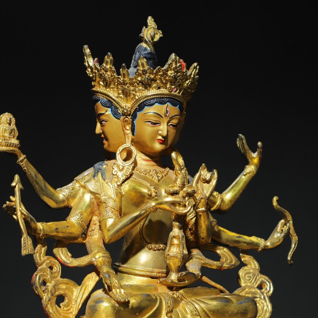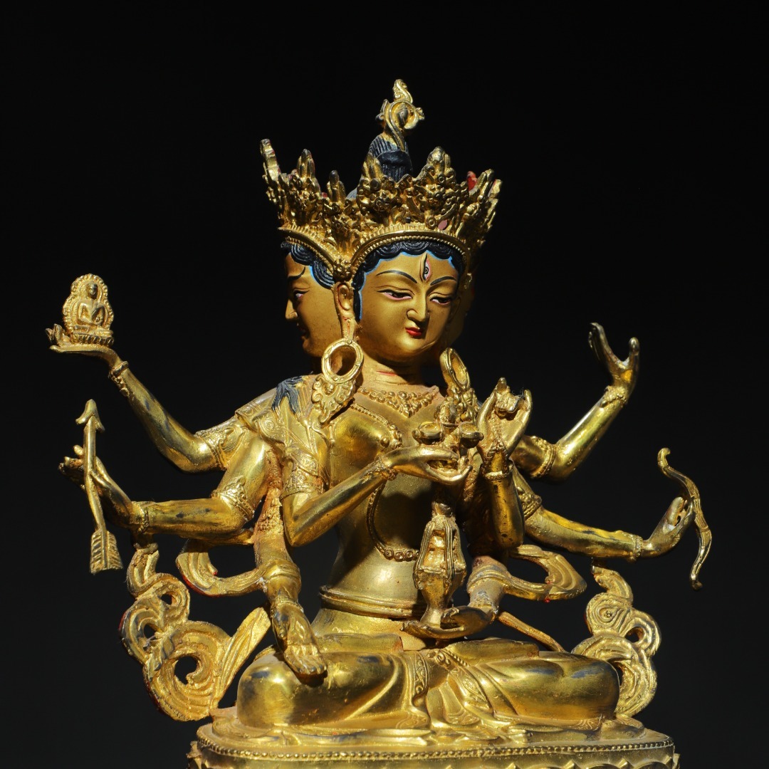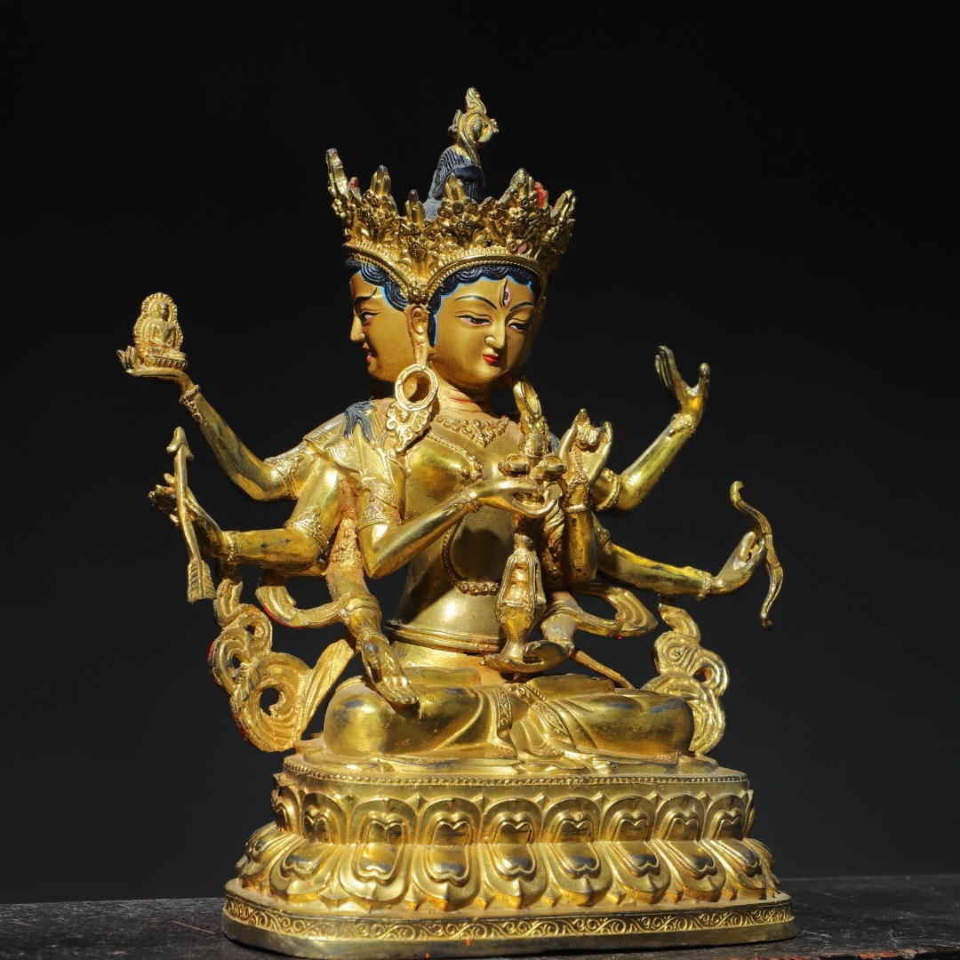 唐物 清 銅塗金 画彩【尊勝仏母】仏像 奉納されていた 供養品 銅製品 古美術品 時代物 中国古玩 骨董品 D64