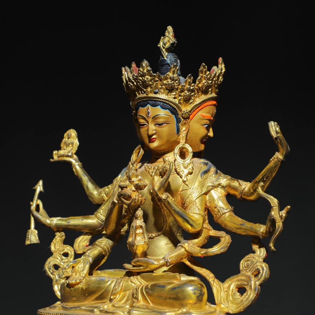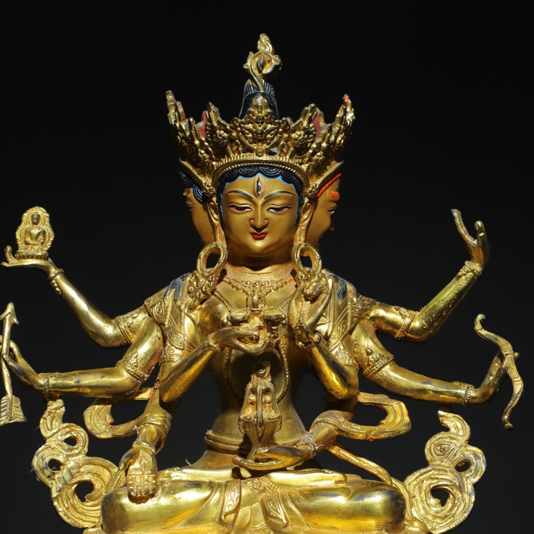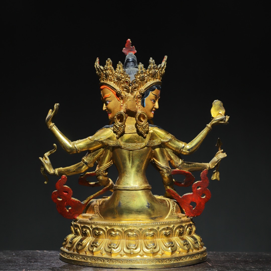唐物 清 銅塗金 画彩【尊勝仏母】仏像 奉納されていた 供養品 銅製品 古美術品 時代物 中国古玩 骨董品 D64