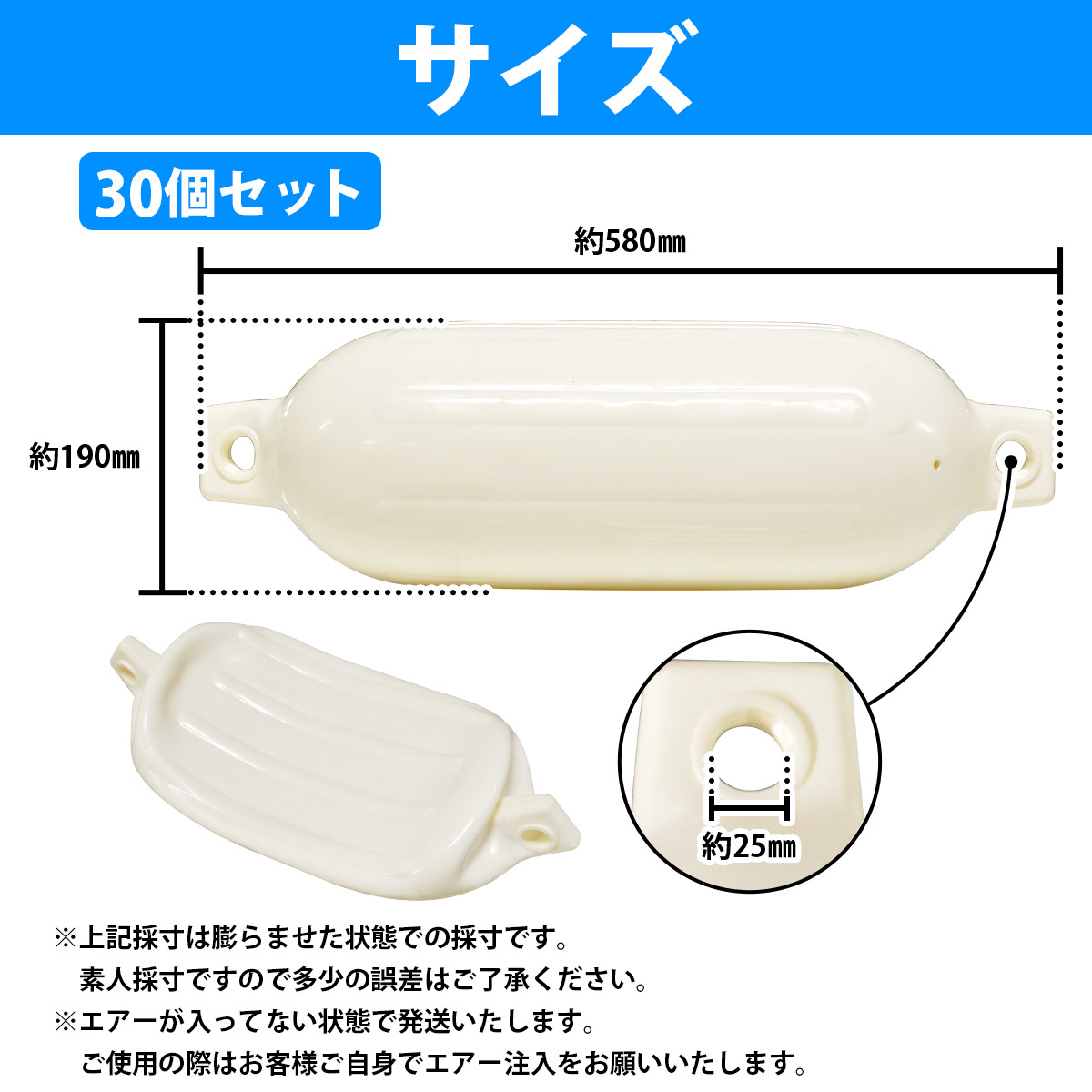 『30個セット』ボートフェンダー 570mm×190mm 20フィートから32フィートまで対応! 25ft 20ft 32ft 30ft … フロート 船 係留 ブイ 浮き