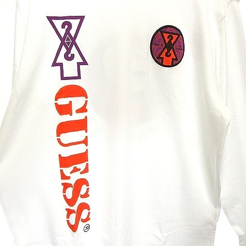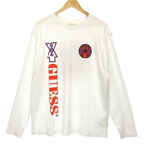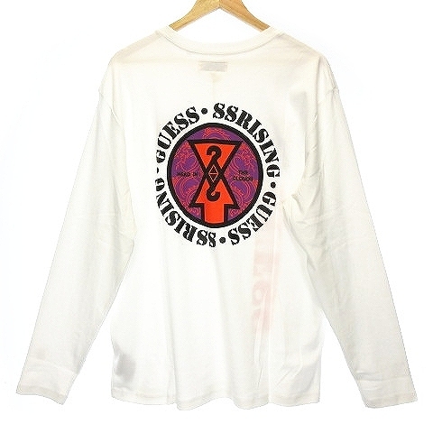 未使用品 ゲス GUESS 19AW GUESSx88RISING Tシャツ 長袖 クルーネック ロンT コットン オーバーサイズ ロゴ バックプリント S 白 メンズ