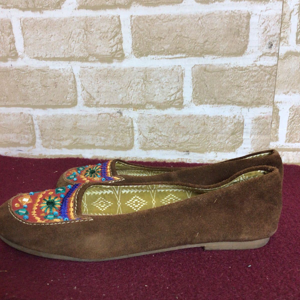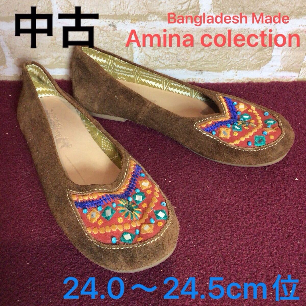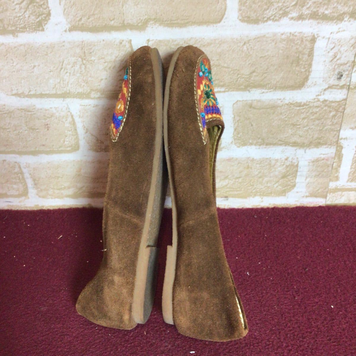 【売り切り!送料無料!】A-343 Amina colection!バレエシューズ!ブラウン!24.0〜24.5cm位!スエード!ビーズ!刺繍!おしゃれ!中古!
