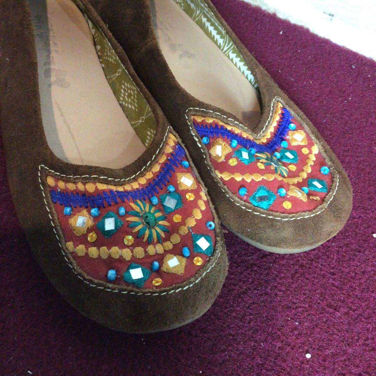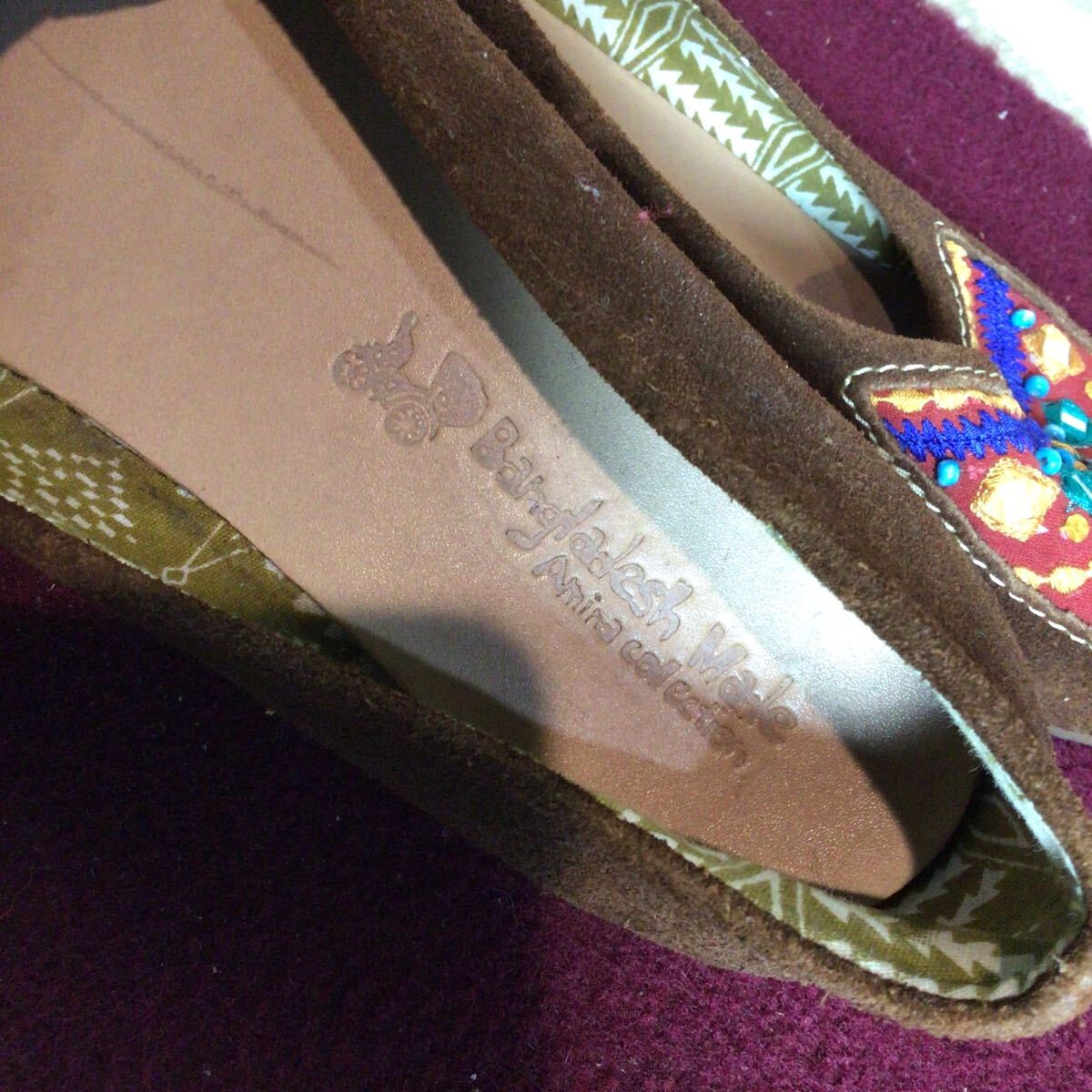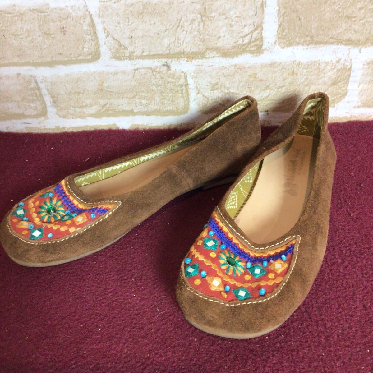 【売り切り!送料無料!】A-343 Amina colection!バレエシューズ!ブラウン!24.0〜24.5cm位!スエード!ビーズ!刺繍!おしゃれ!中古!