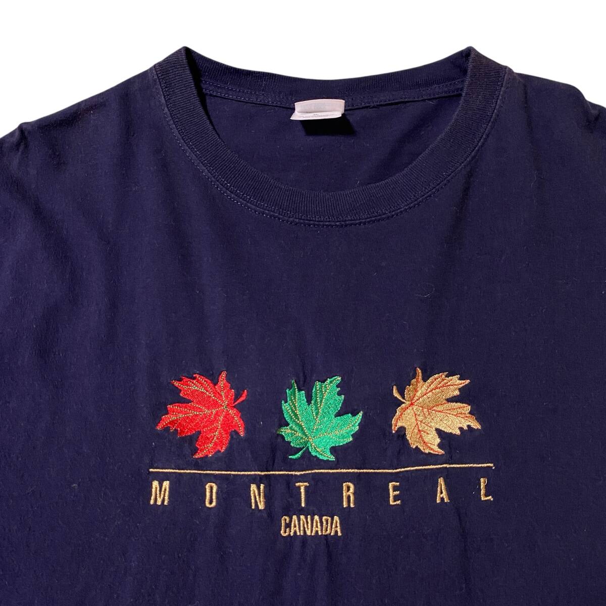 古着 モントリオール カナダ 刺繍 クルーネック ネイビー XLサイズ コットン 【I1711】