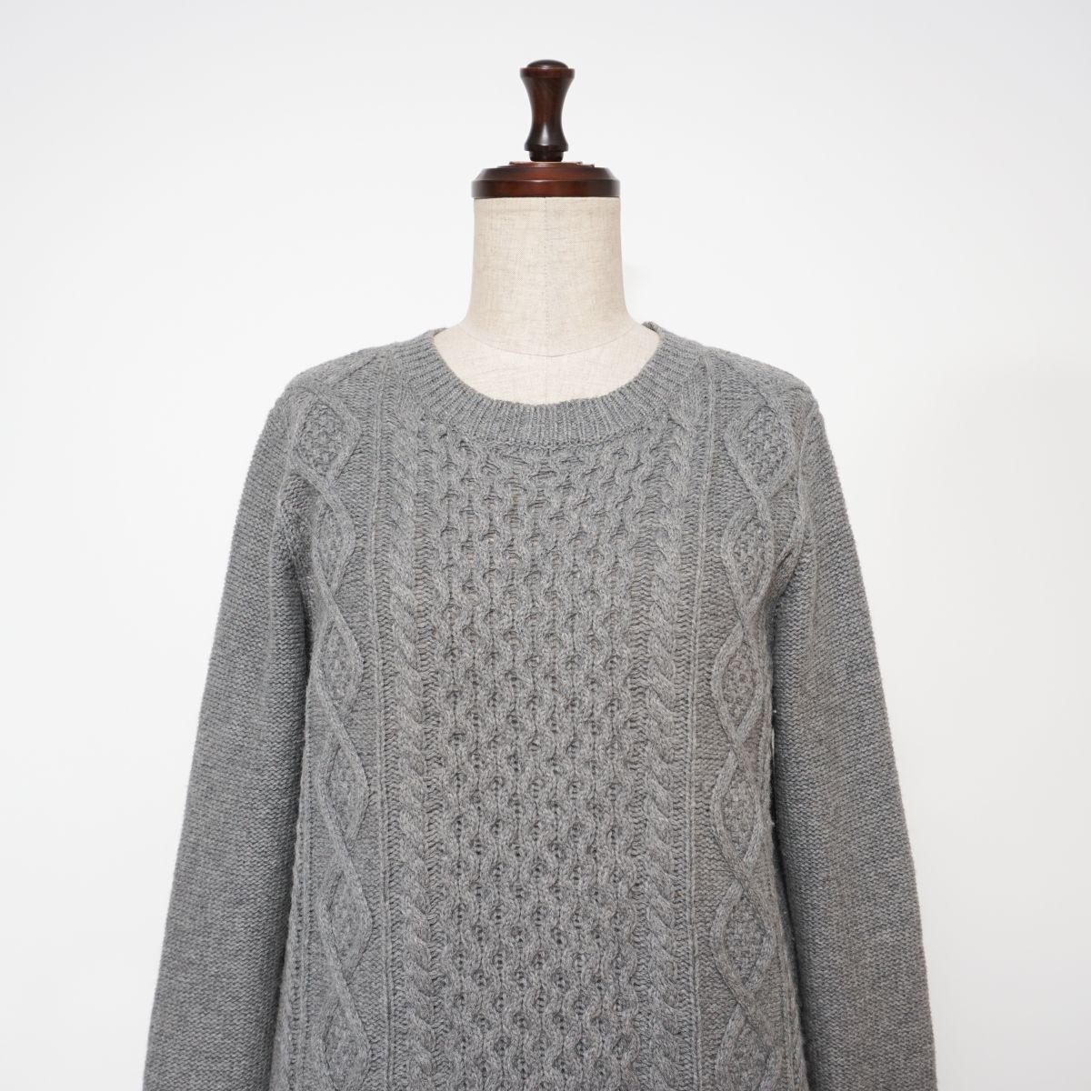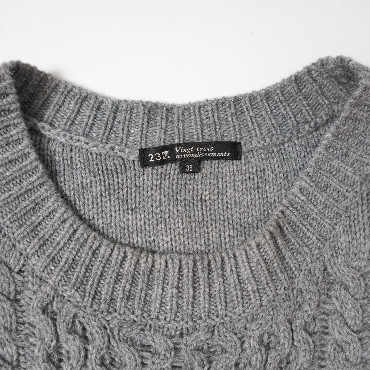23区 ニジュウサンク ウール・カシミヤ混 ケーブルニットワンピース ミモレ丈 セーター レディース グレー サイズ38*BD1052