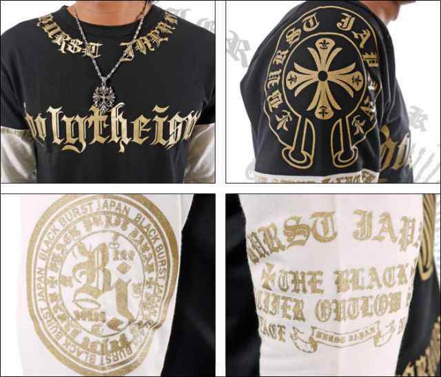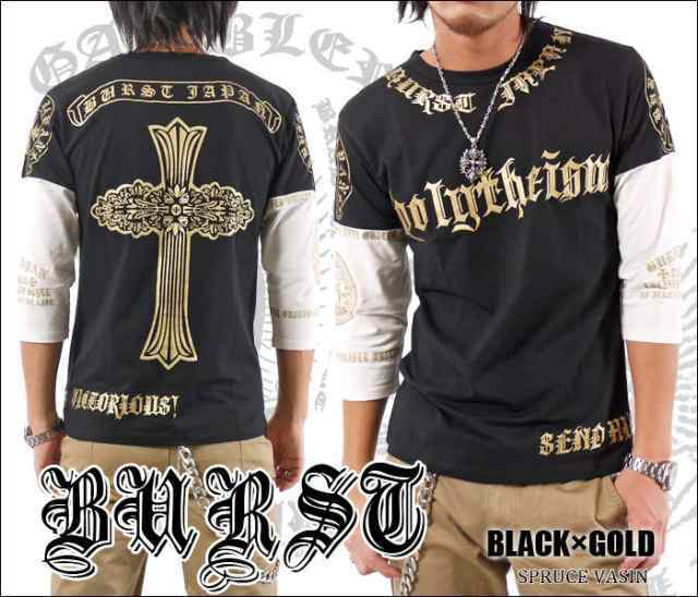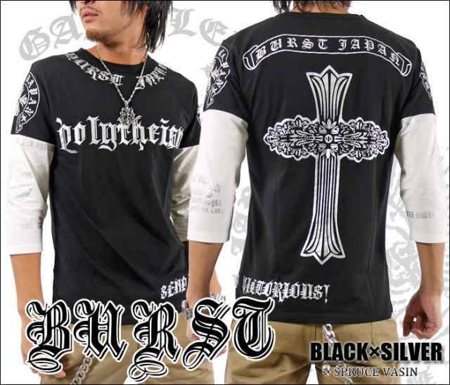 BURST JAPAN 袖切替Polytheismバッククロスプリント7分袖Tシャツ 70547 新品 ブラック×シルバー M