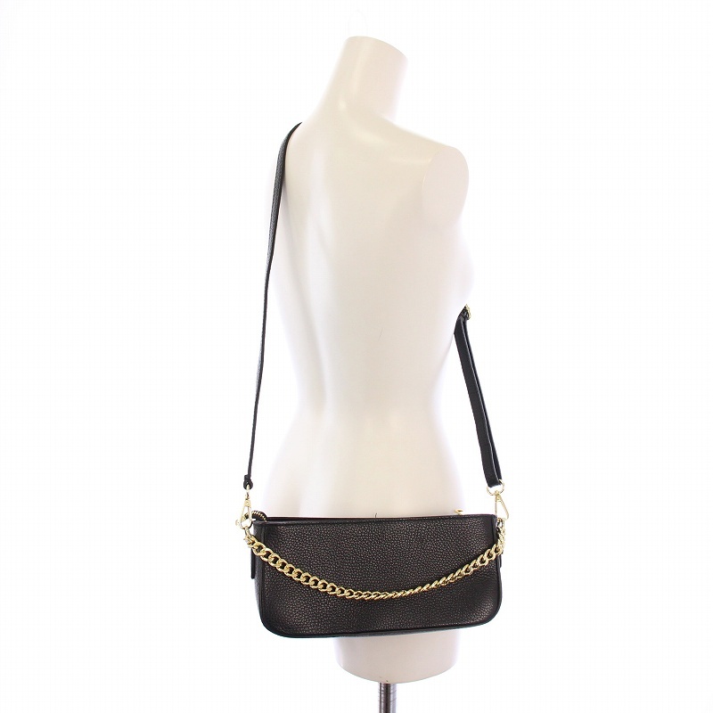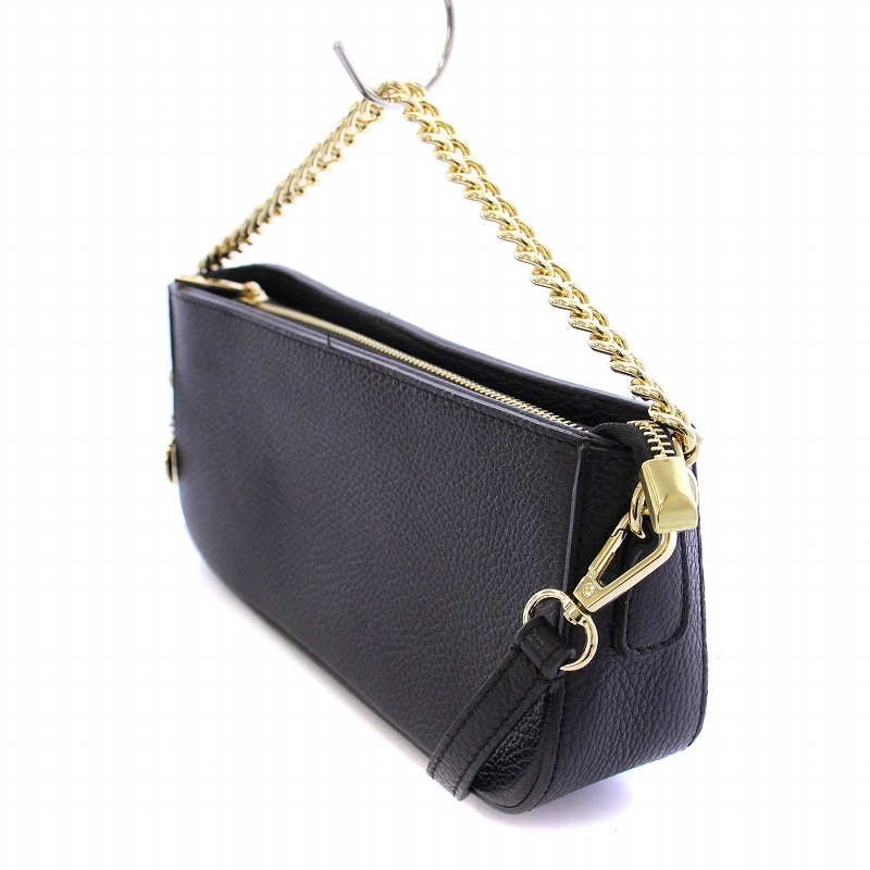ローラディマッジオ LAURA DI MAGGIO 2WAY ハンドバッグ ショルダーバッグ ワンハンドル チェーン ロゴチャーム レザー 黒 ■OF