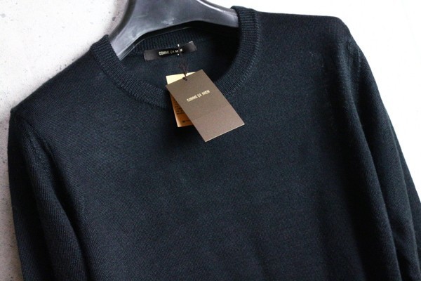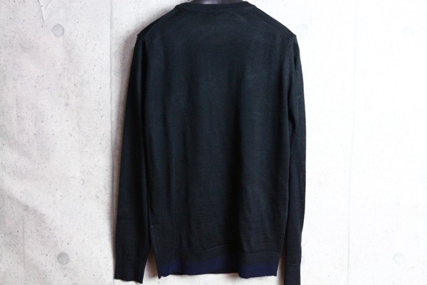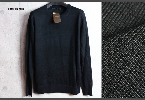 新品 コムサメン ウール混 配色 クルーネック ニット セーターM黒/COMME CA MEN/ハイゲージ