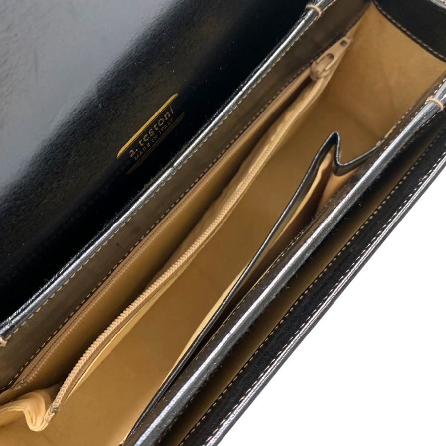 ア テストーニ ショルダーバッグ レザー イタリア製 ゴールド金具 ブラック a.testoni【AFE1】