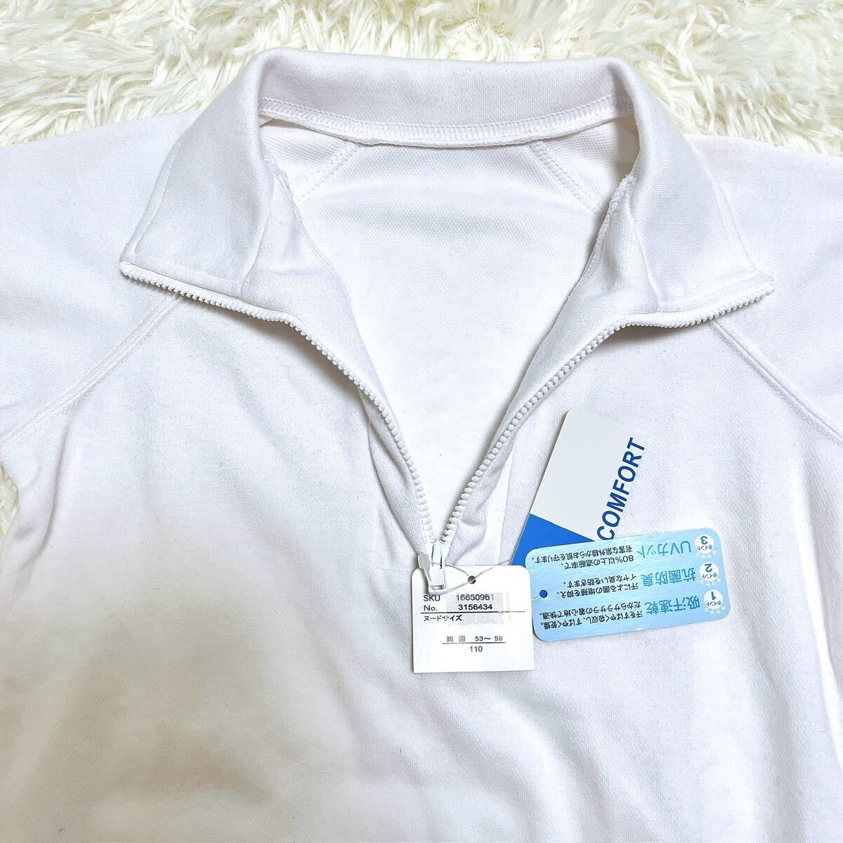 体操服/半袖/トップス/カットソー/白/白色/ホワイト/ファスナー/チャック/無地/シンプル/襟/110cm/新品/未使用/美品/タグ付/タグ付き/タグあり/タグ/ニッセン