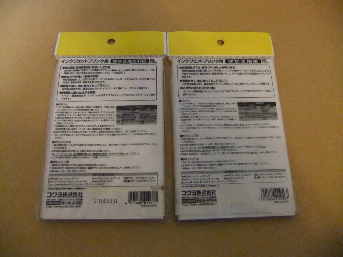 | 1点物【未開封】KOKUYO OA インクジェットプリンターはがき用紙(光沢)30枚x2 KJ-G2630 コクヨ | |