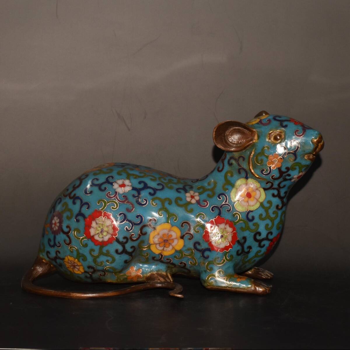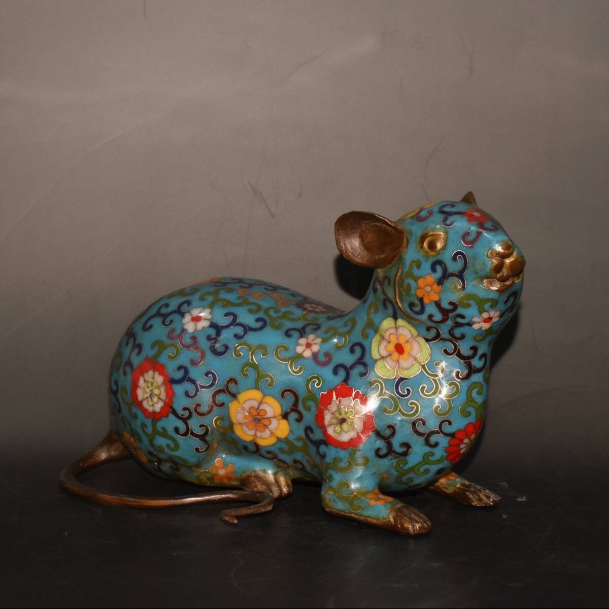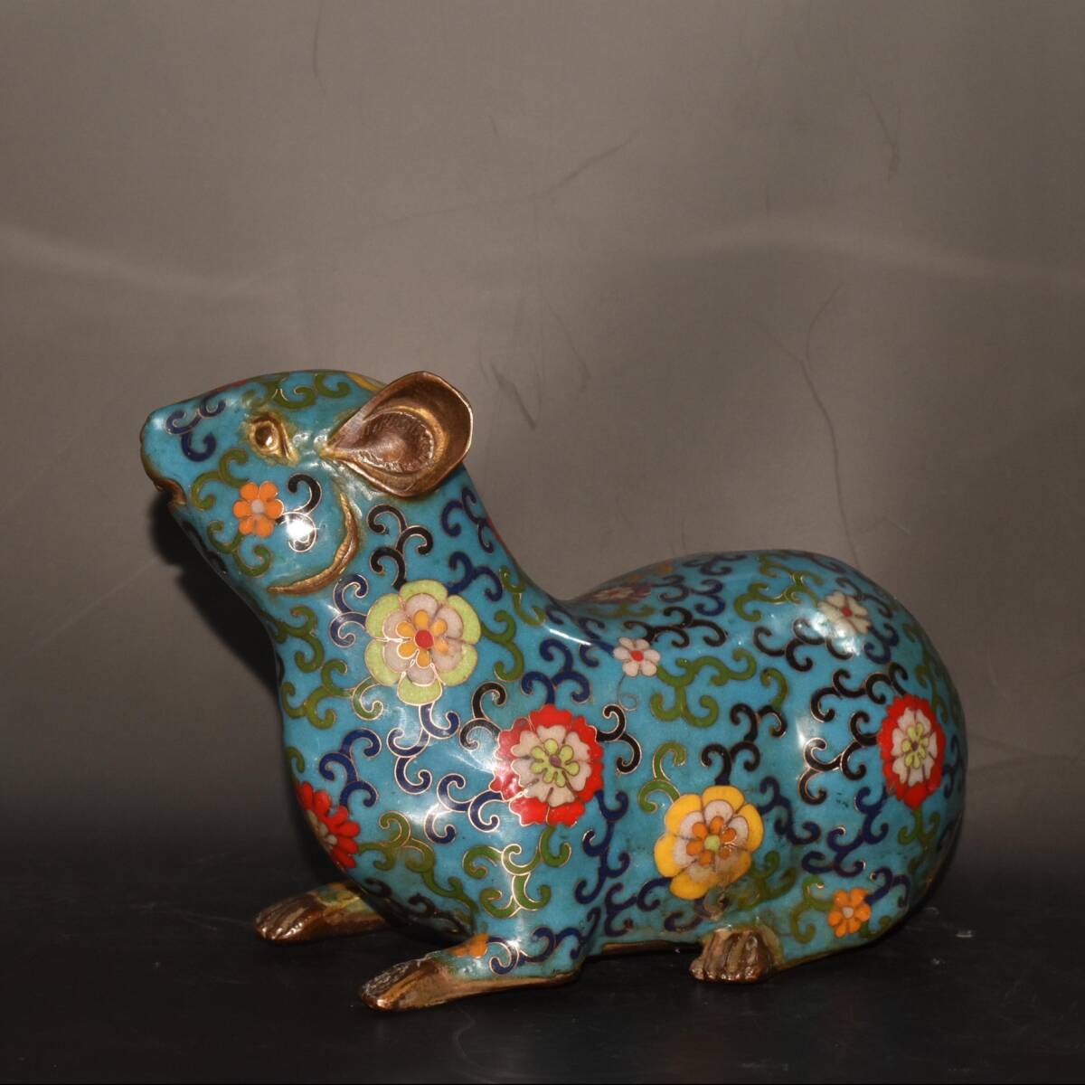 | 【蔵友館蔵品・銅製・景泰藍・琺瑯彩・發財鼠】・希少珍品・置物・賞物・中国時代美術 |