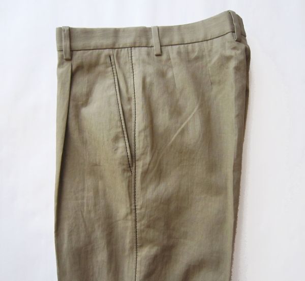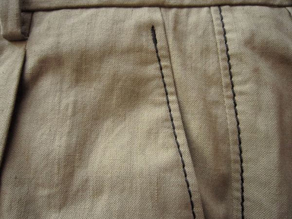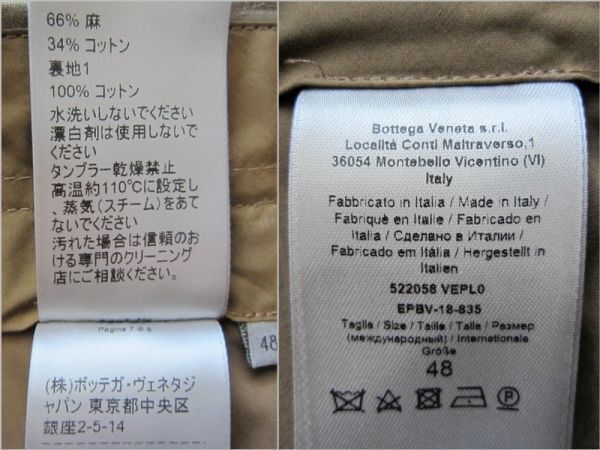 上質感漂うリネンコットン生地を使用、サイドとポケットの切り返しにステッチを施し、ディーテール・デザインに拘り丁寧に仕上げられたボッテガ・ヴェネタならではのエレガントでラグジュアリーな雰囲気が漂った完成度の高い逸品です。