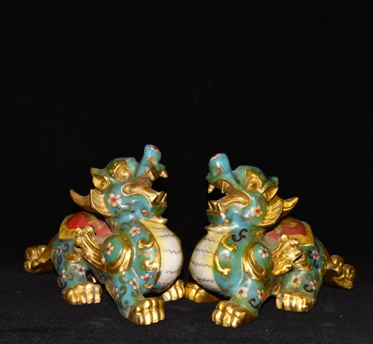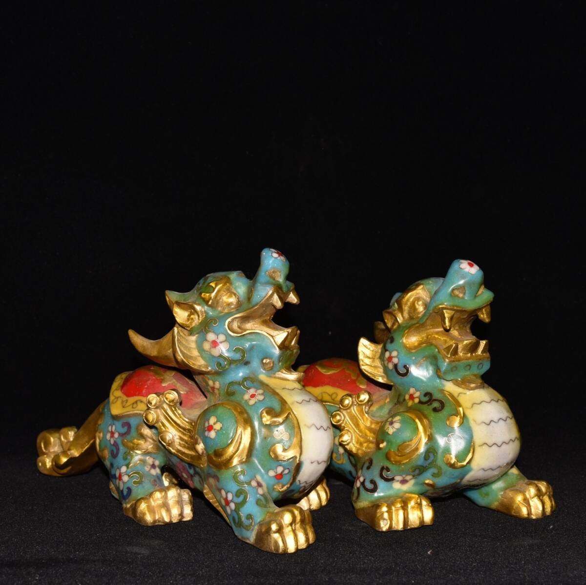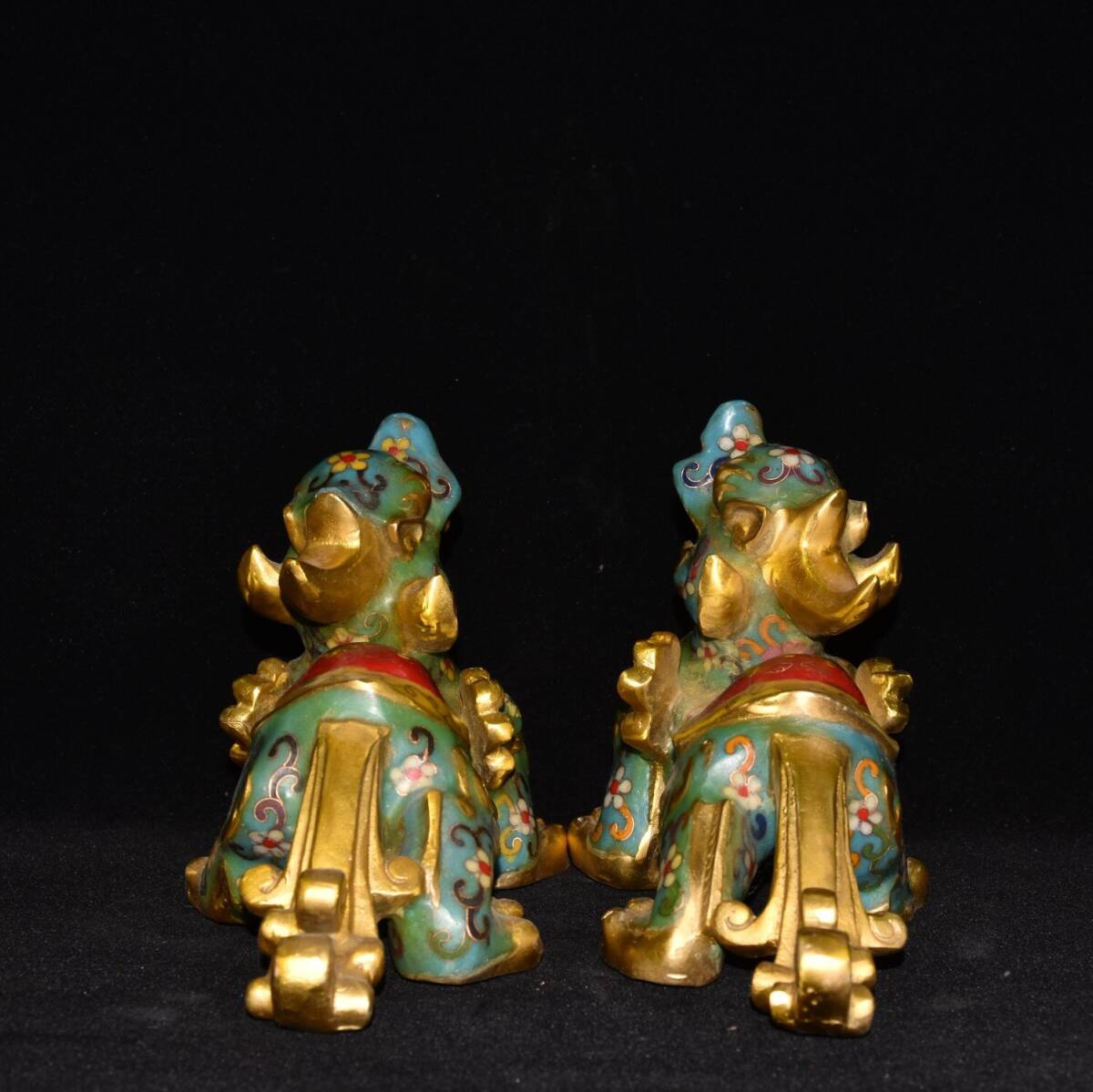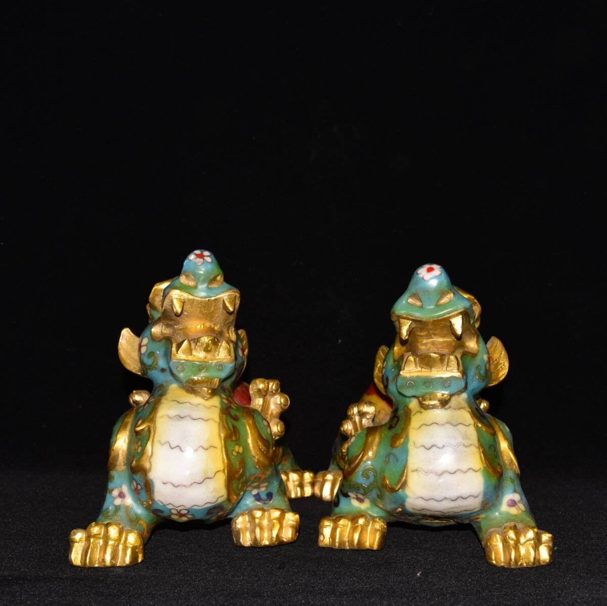| 【蔵友館蔵品・銅製・景泰藍・琺瑯彩・塗金・對獣一對】・希少珍品・置物・賞物・中国時代美術 |