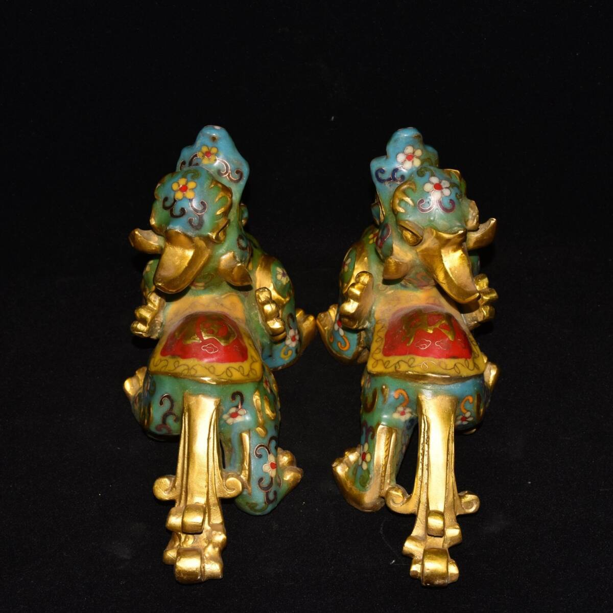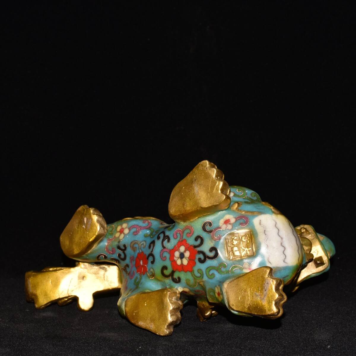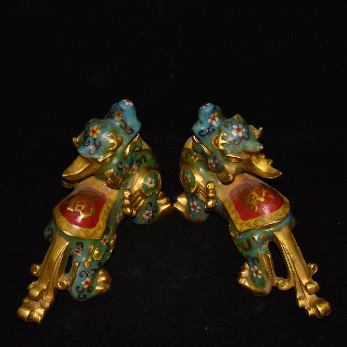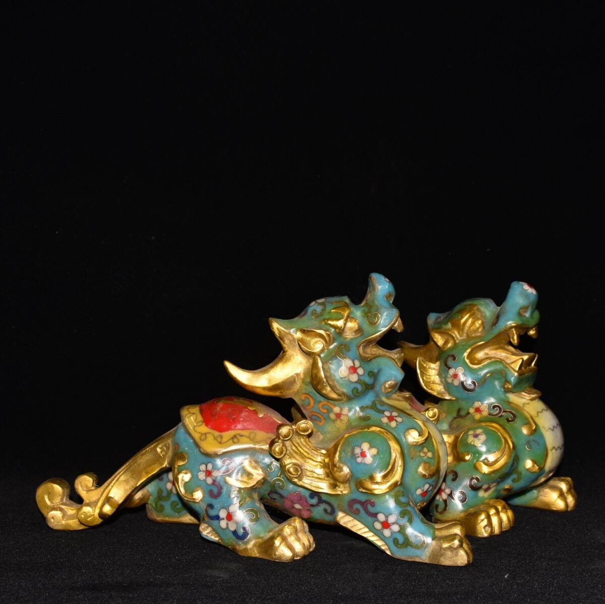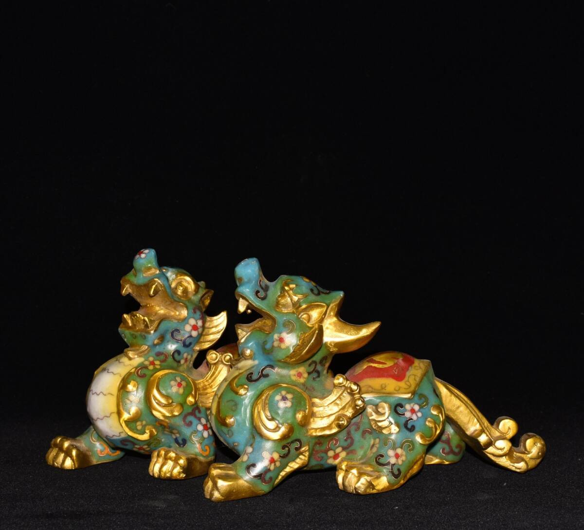 | 【蔵友館蔵品・銅製・景泰藍・琺瑯彩・塗金・對獣一對】・希少珍品・置物・賞物・中国時代美術 |