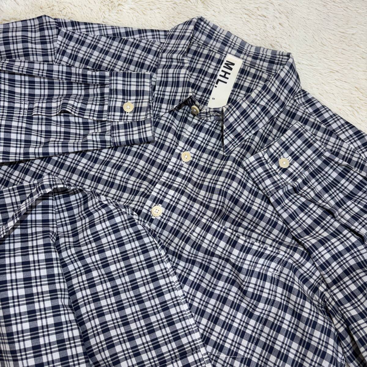 | X459美品!■MHL/マーガレットハウエル★白*濃紺チェック★シャツ■S | ||||||||||||||||||||