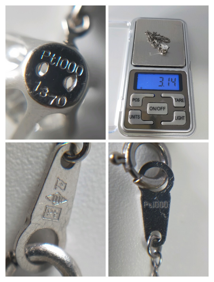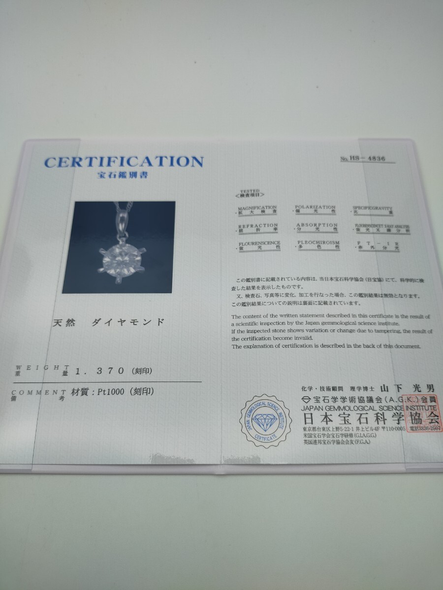 大粒 1.370ct 天然ダイヤモンド 一粒ダイヤモンドネックレス 純プラチナ 40cm pt1000 ダイヤ diamond ペンダント