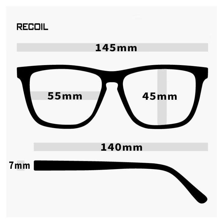 レンズ横幅 / 約55mm レンズ縦幅 / 約45mm テンプル長さ / 約140mm 正面横幅(直線距離) / 約145mm |