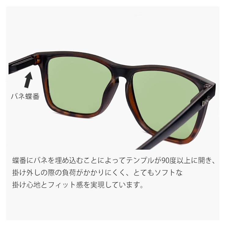 ・サイドの締め付け感を軽減するスプリングヒンジ仕様で快適に着用できます。 ・海面・路面・雪面など反射光のぎらつきをカットする偏光レンズを採用。 ・顔型に捕らわれず合いやすく使いやすい逆台形型のウェリントンフレーム。 ・女性や男性問わずに使えるユニセックスフレーム。 |