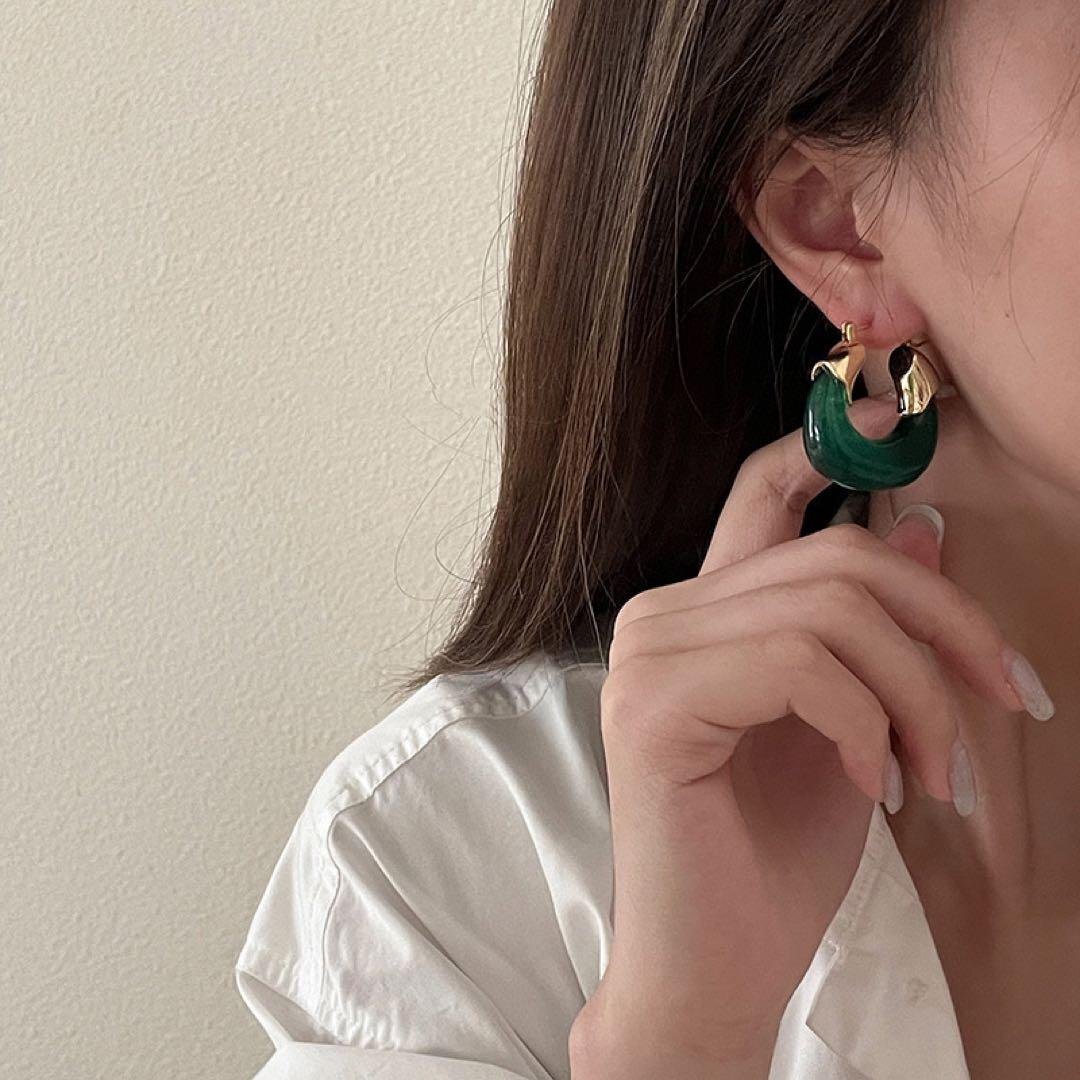 新品 可愛いグリーンピアス フープピアス レディースピアス リングピアス