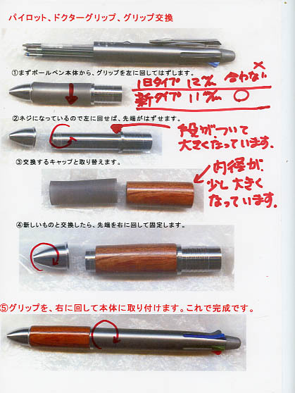 パイロットドクターグリップ4+1、黒柿グリップだけの販売DR35
