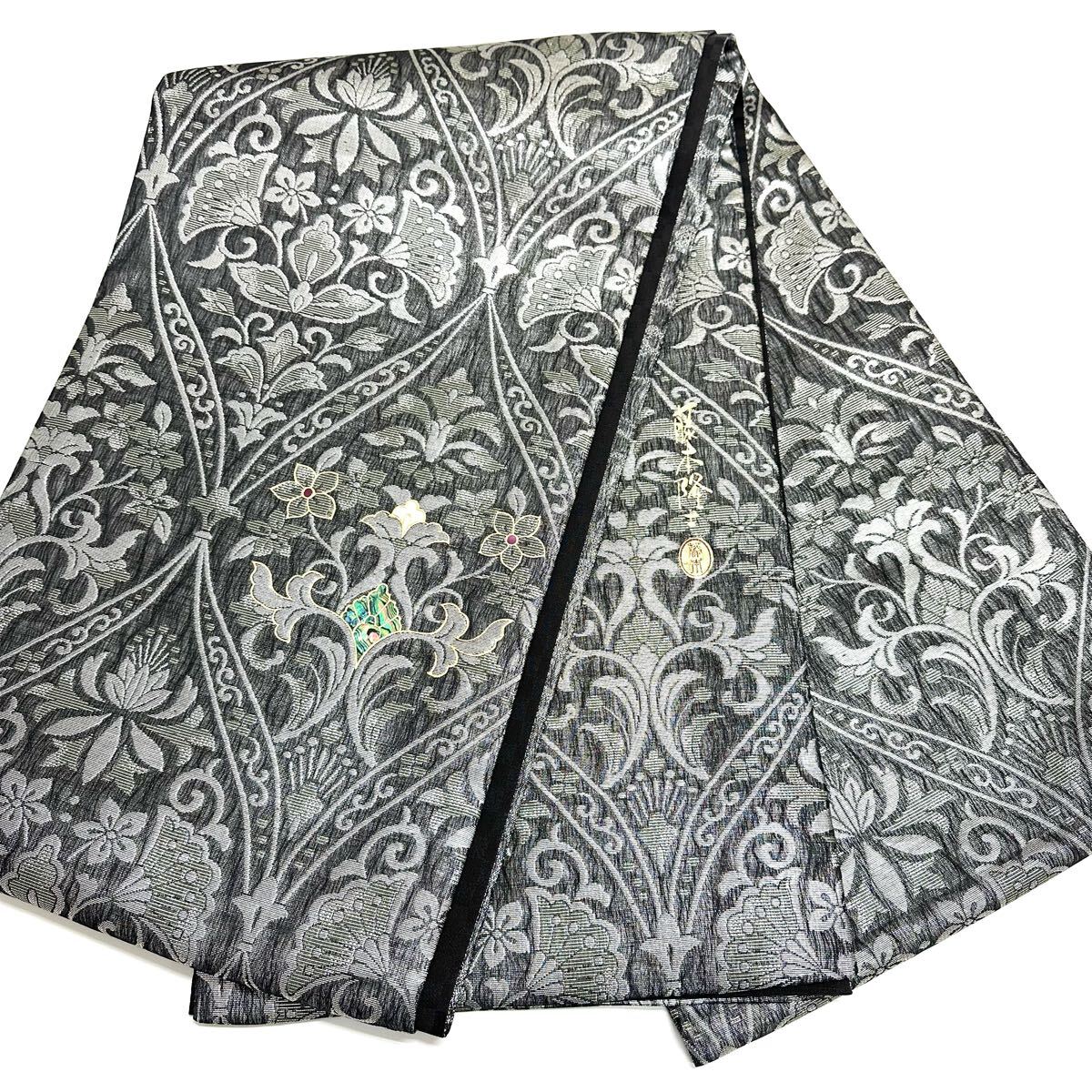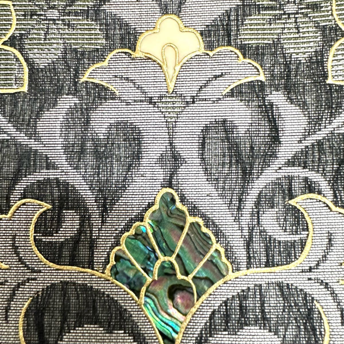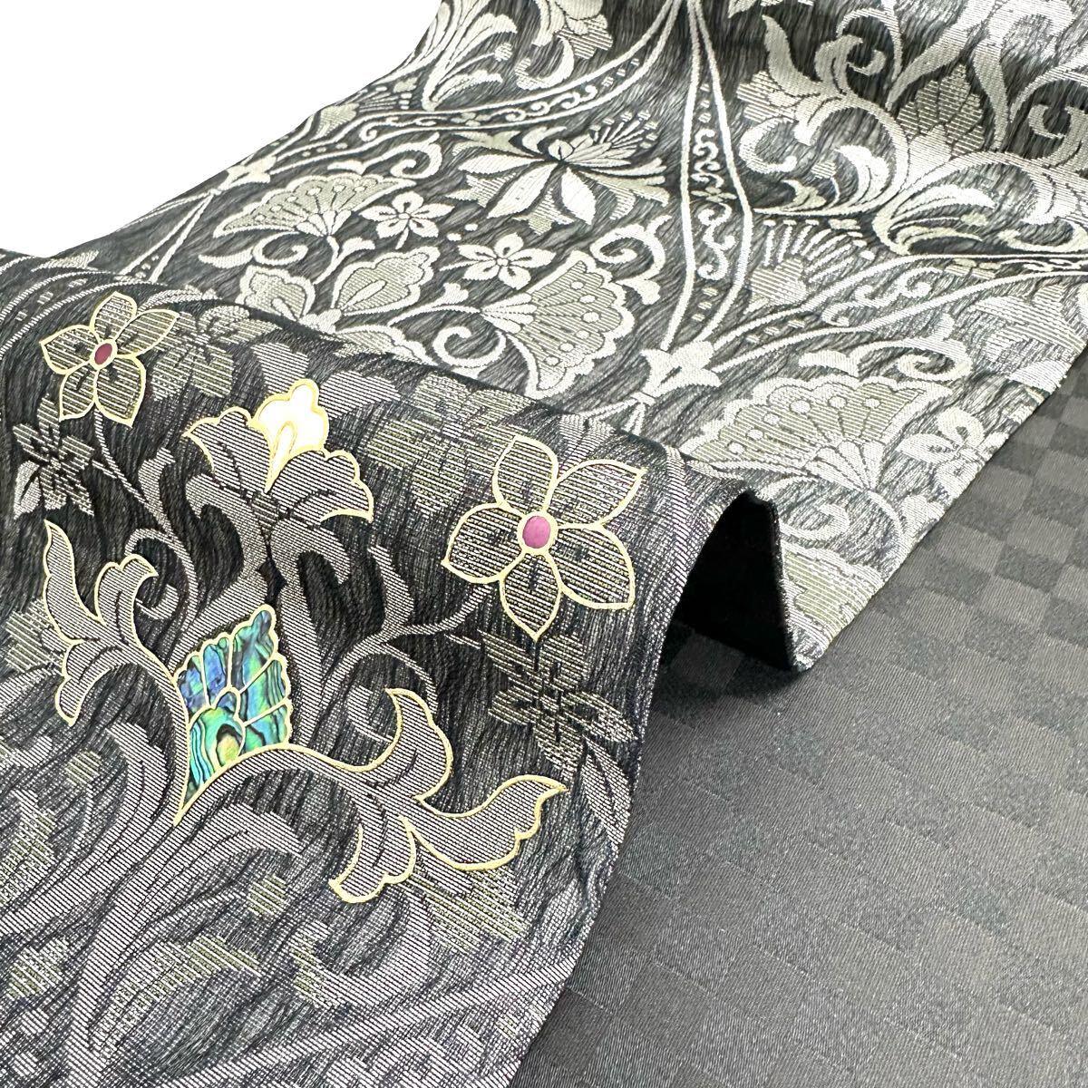 【七福】c533 逸品 高級品 正絹 袋帯 六通 螺鈿作家 藤本隆士 シルバー 西陣 豪華