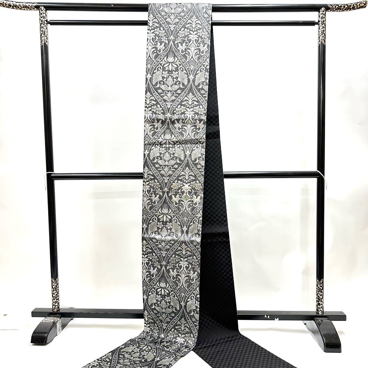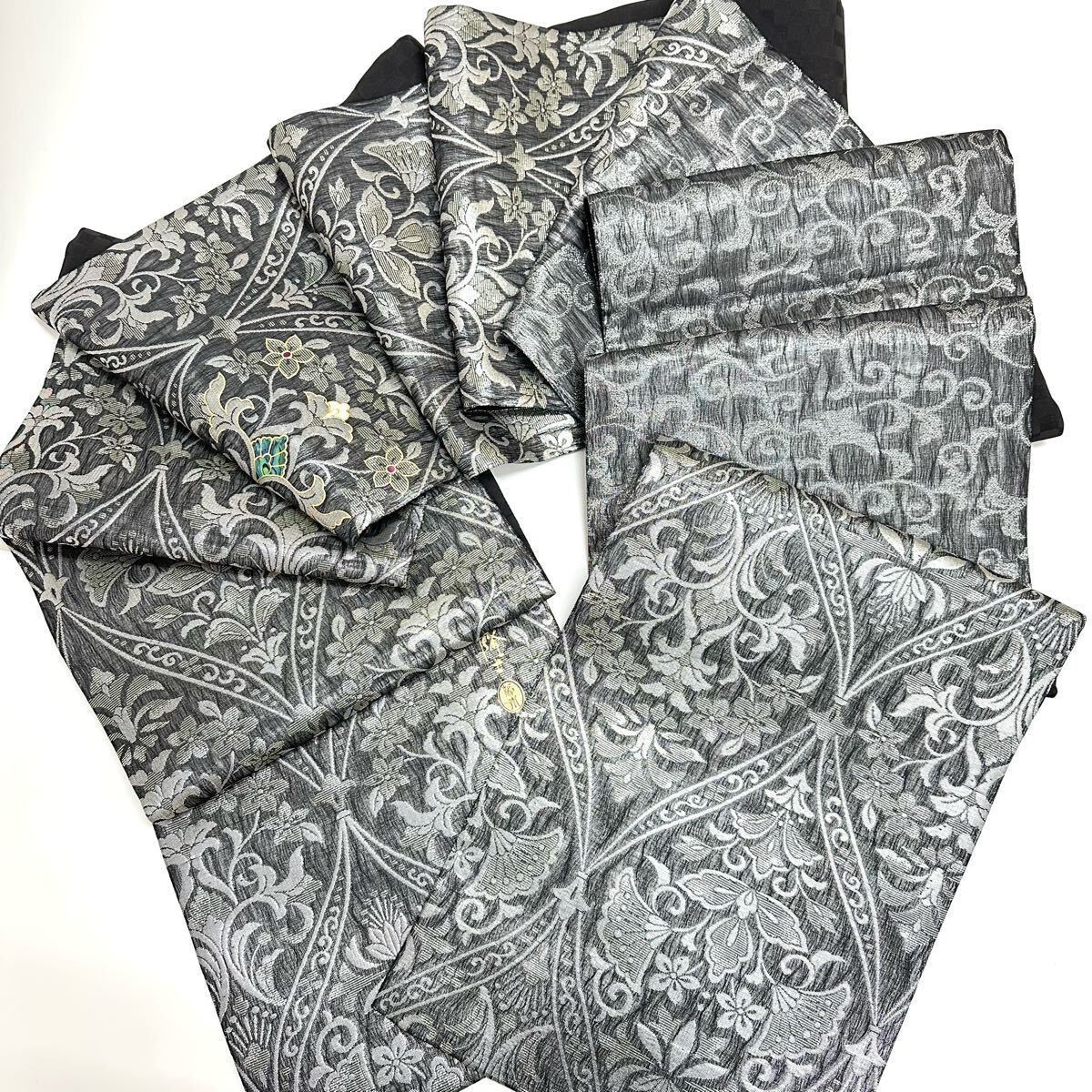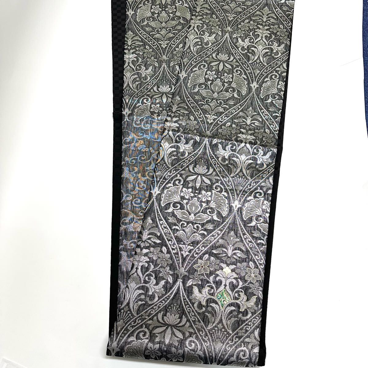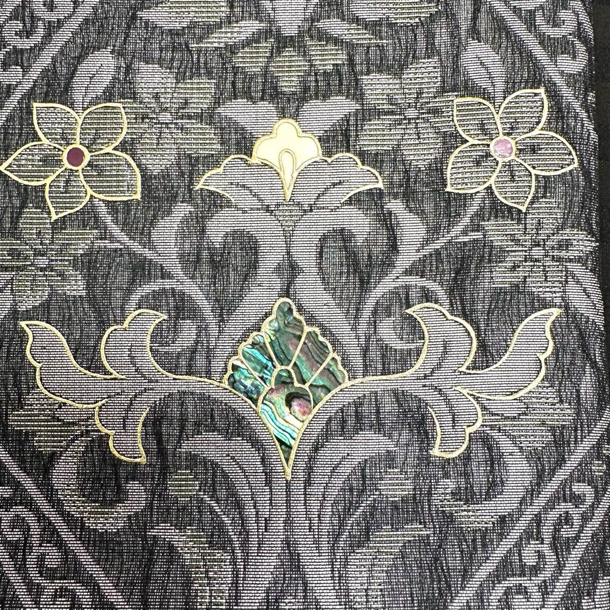 【七福】c533 逸品 高級品 正絹 袋帯 六通 螺鈿作家 藤本隆士 シルバー 西陣 豪華
