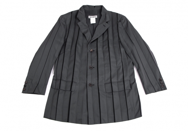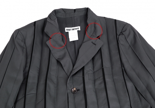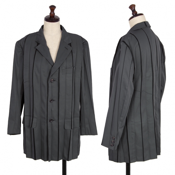 イッセイミヤケISSEY MIYAKE 裏メッシュストライププリントプリーツジャケット グレーM |