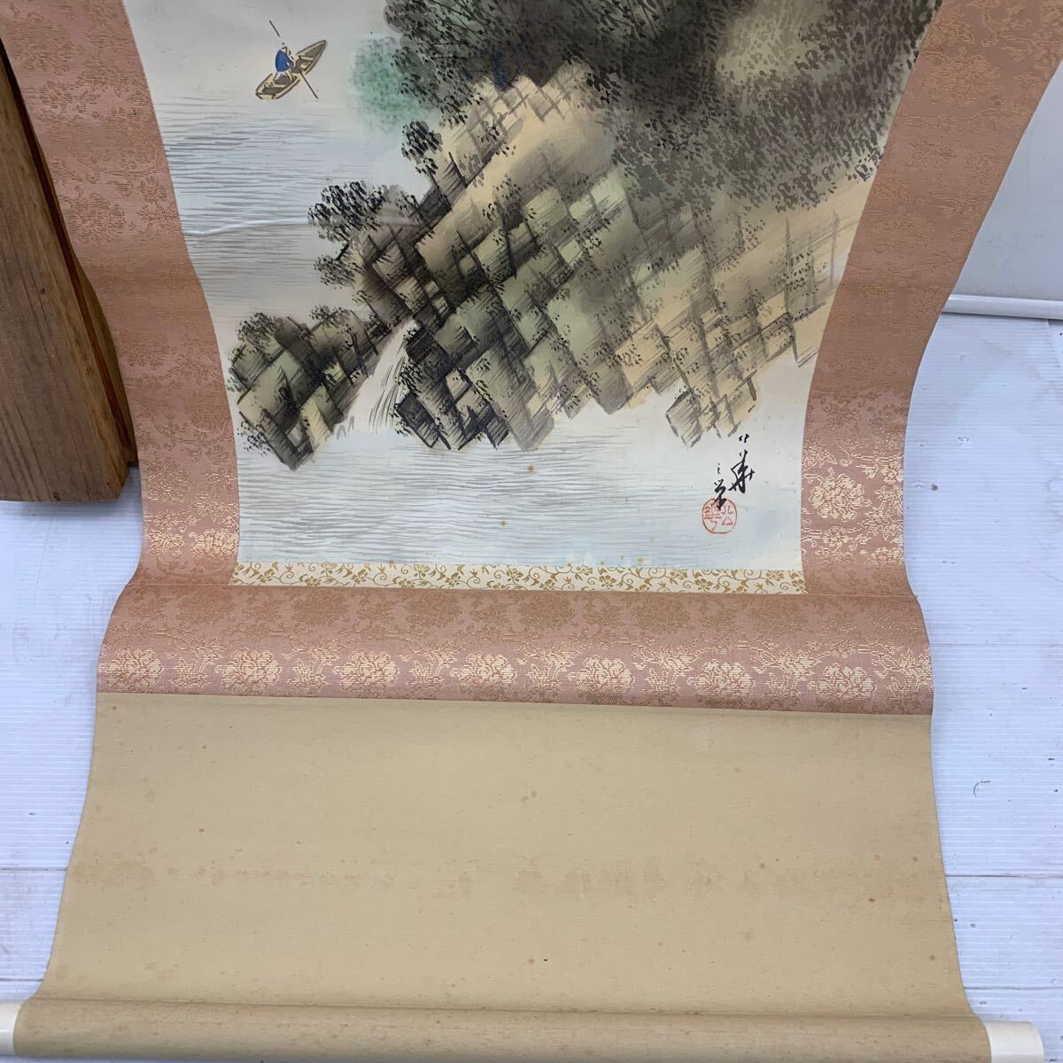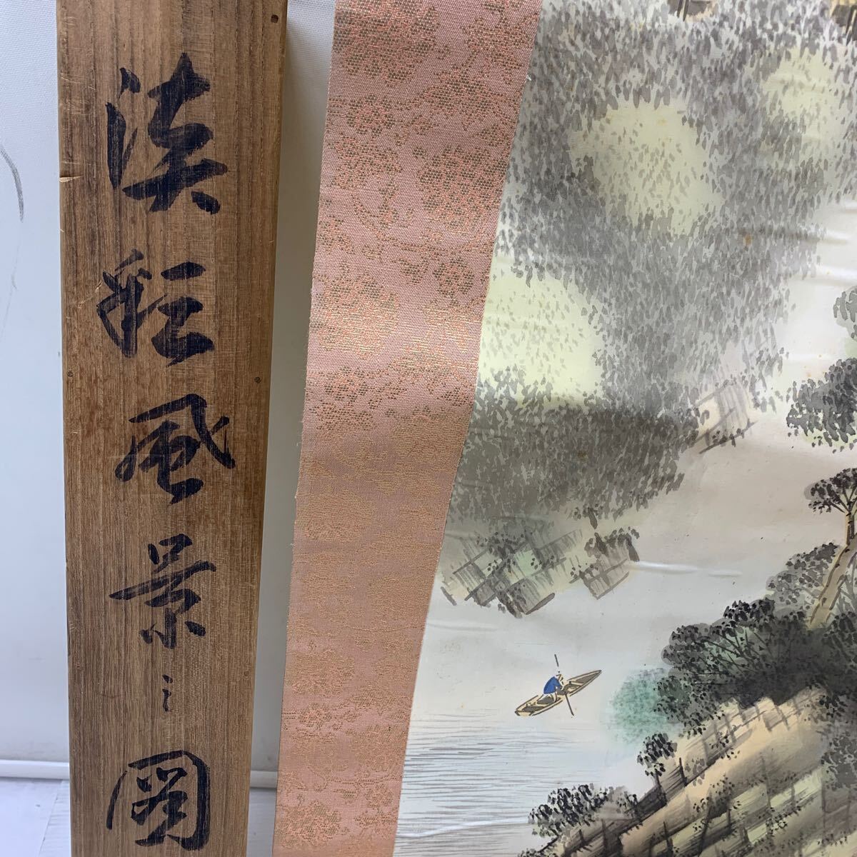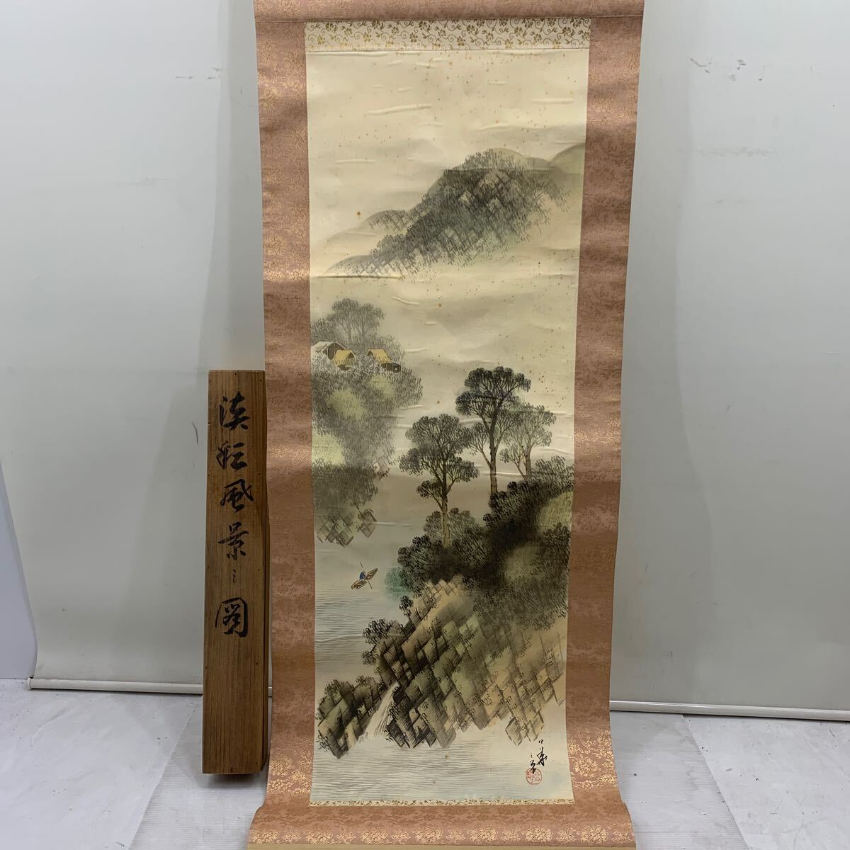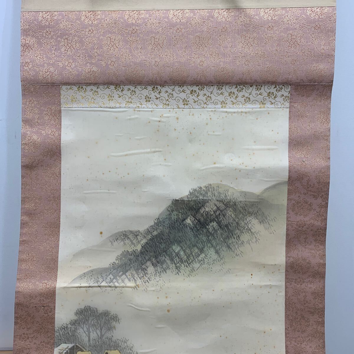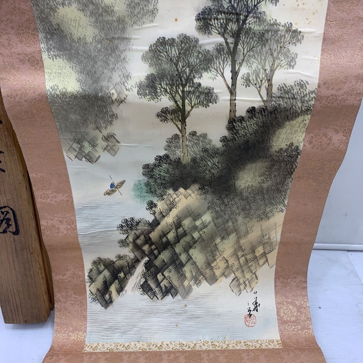 I☆真作☆掛軸 掛け軸 模写 年代物 絵画 インテリア 作者不明 詳細不明 淡彩風景図? アンティーク ヴィンテージ 飾り 飾り物 木 川 森林