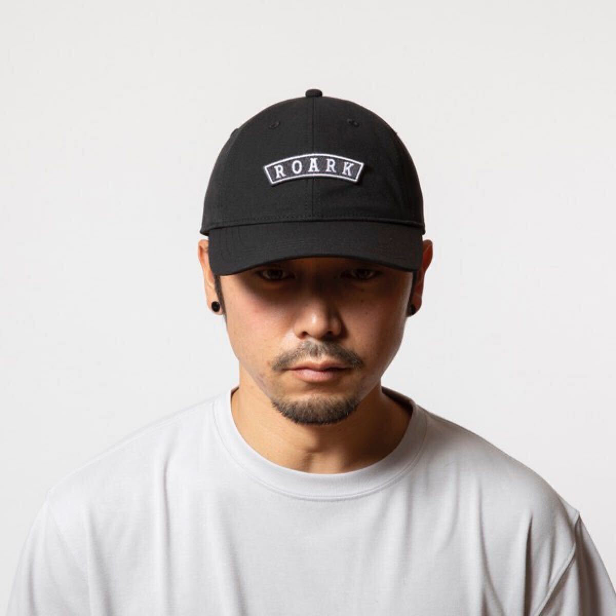 ROARKのMEDIEVALロゴの刺繍ワッペンをあしらった6パネルキャップ。