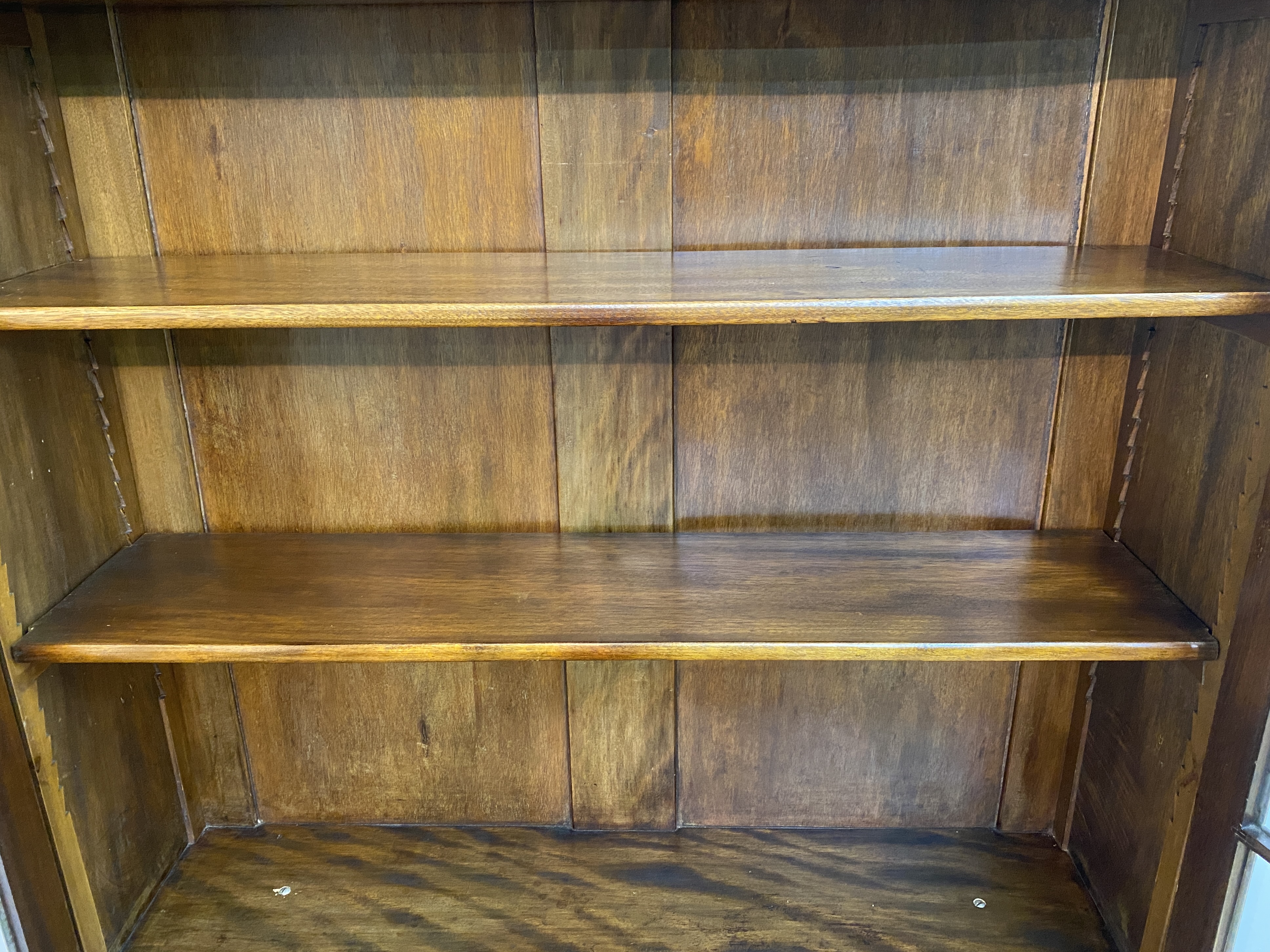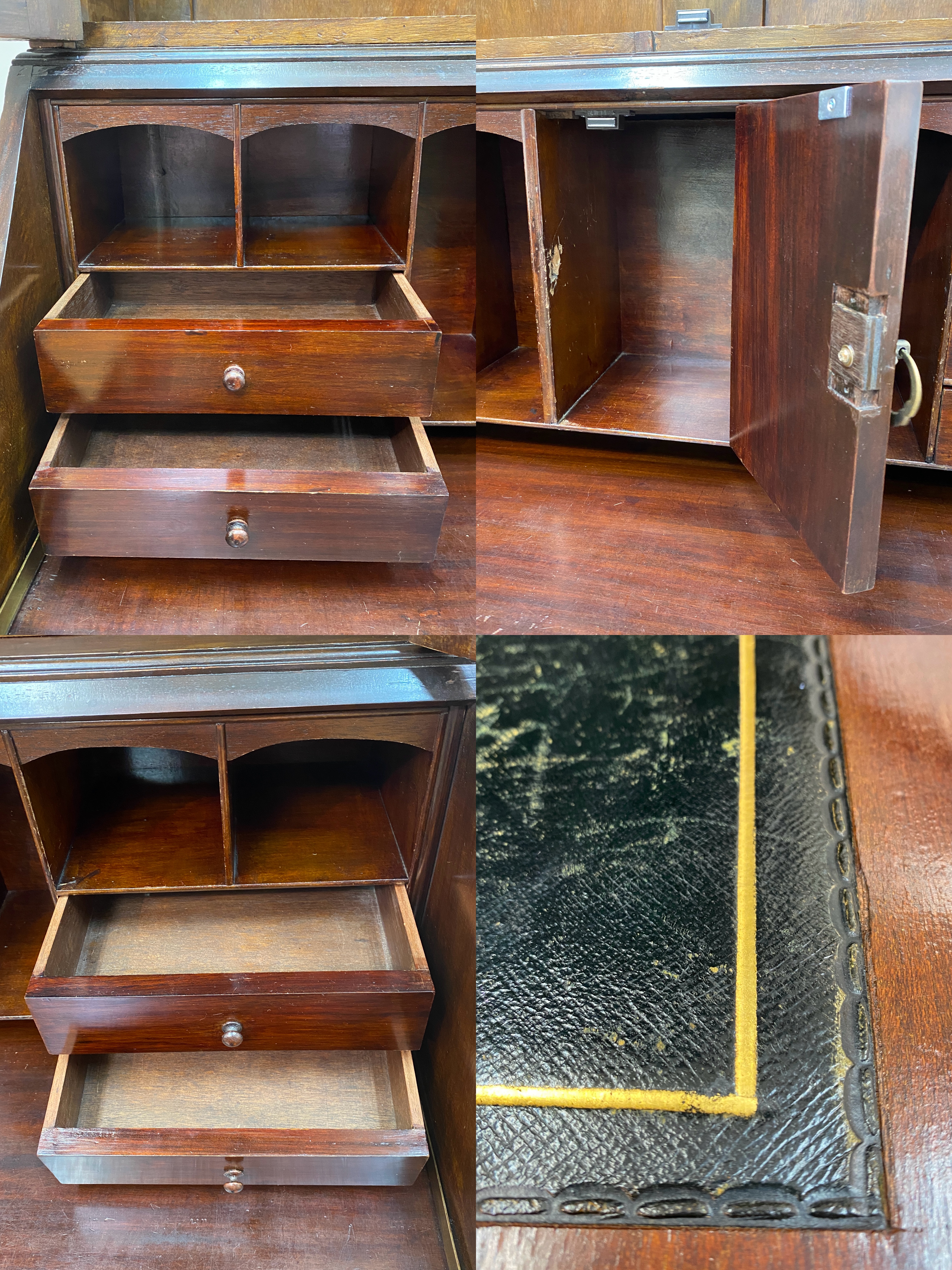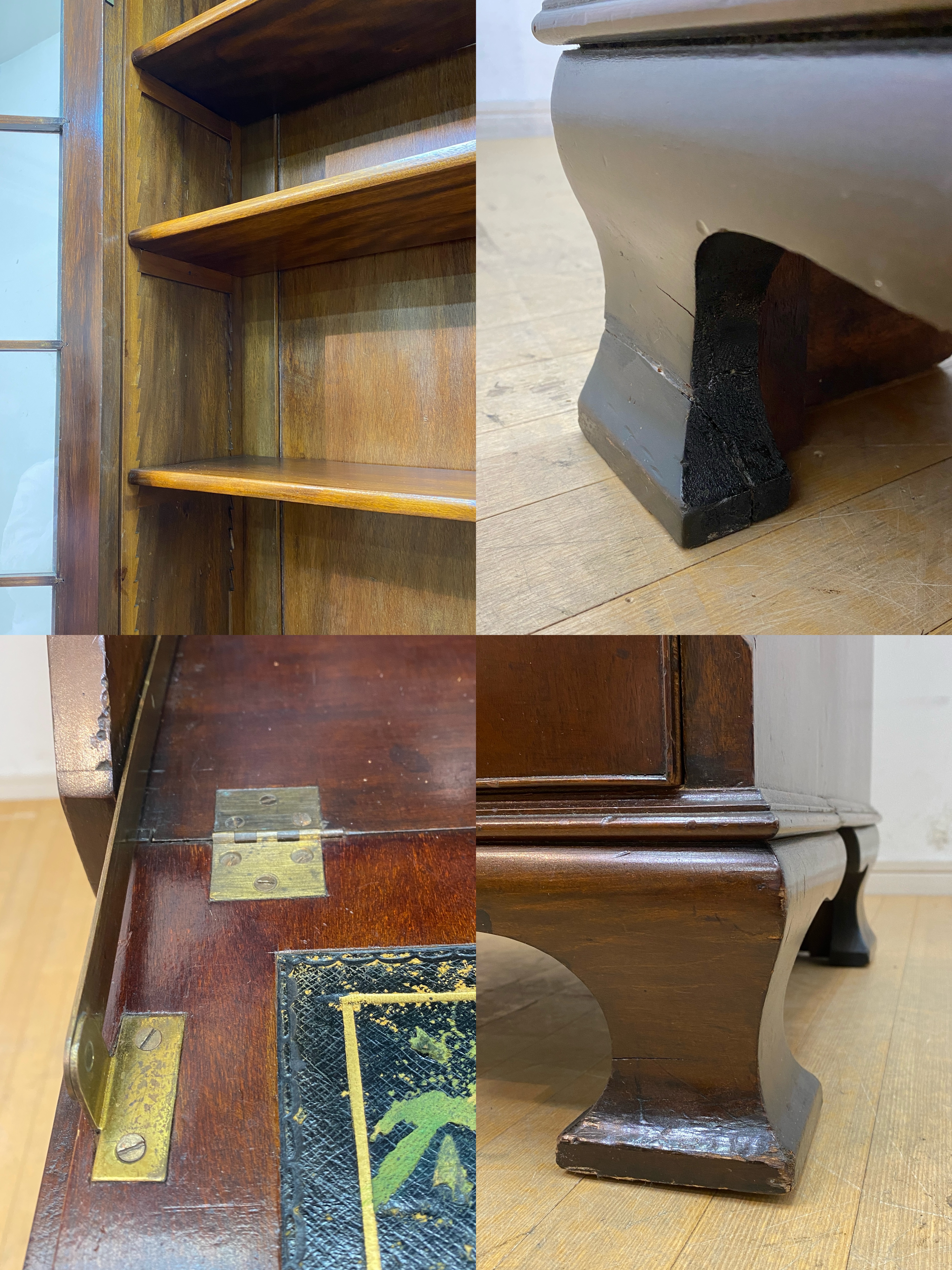 ■品名 アンティーク ライティングビューロー ■サイズ 幅/940mm × 奥行/510mm ・860mm× 高さ/ 2230mm ■材質 木製、ガラス、革、金属(取手金具ほか) ■生産国 イギリス(1900年前後) ■備考 上段:幅/960mm × 奥行/290mm × 高さ/ 1210mm 下段:幅/940mm × 奥行/510mm × 高さ/ 1020mm ■その他 上下分割、はめ込み式(木ねじ固定)