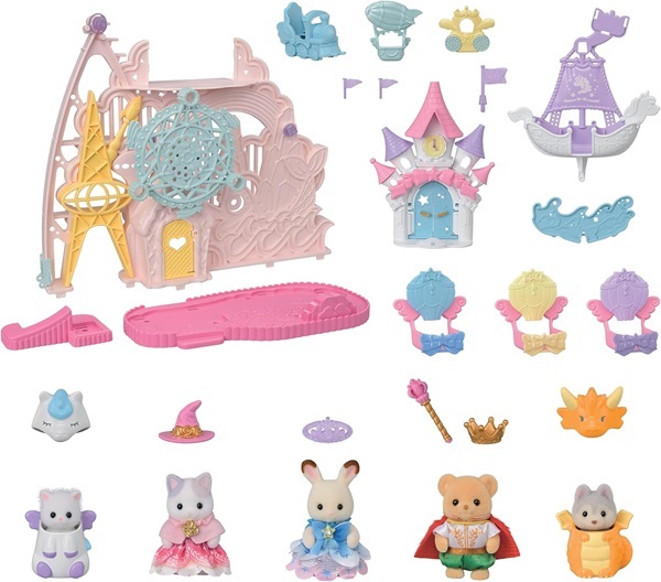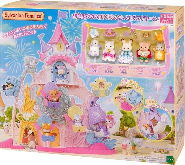 別売りの「お空のゆめいろフェアリーキャッスル」「ゆめいろマーメイドキャッスル」と一緒に遊ぶと、ゆうえんち遊びがもっと楽しくなります。