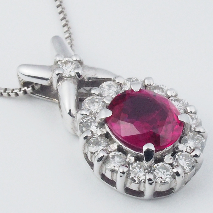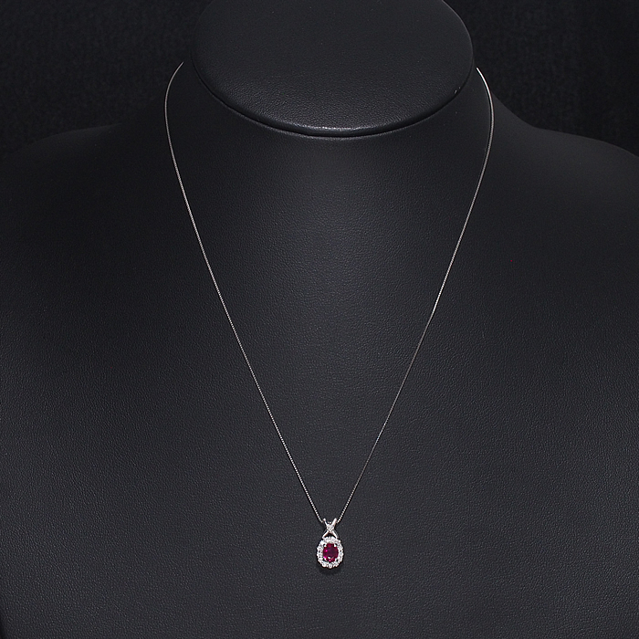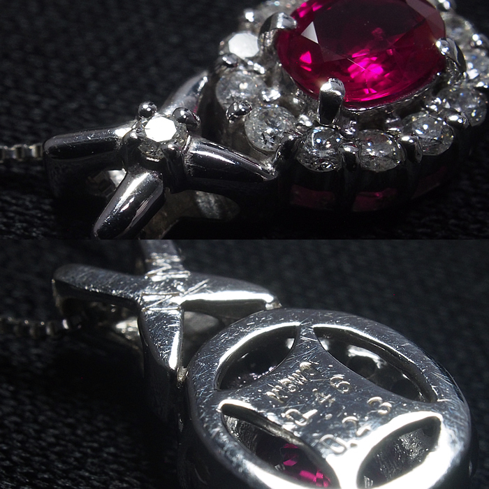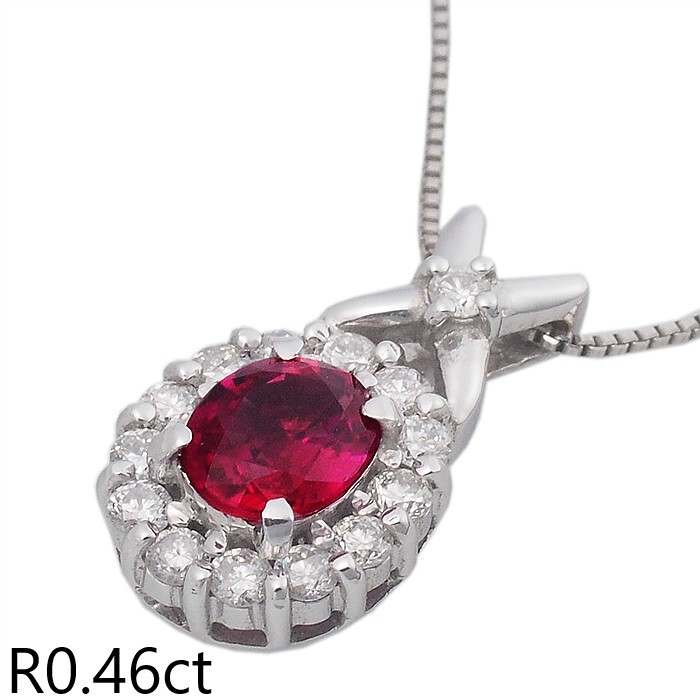 詳細:ノーブランド ルビー/0.46ct ダイヤ/0.23ct K18WG ネックレス 鑑別カード付き 仕上済