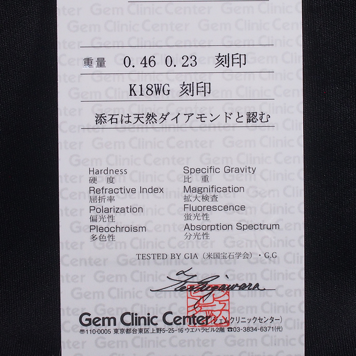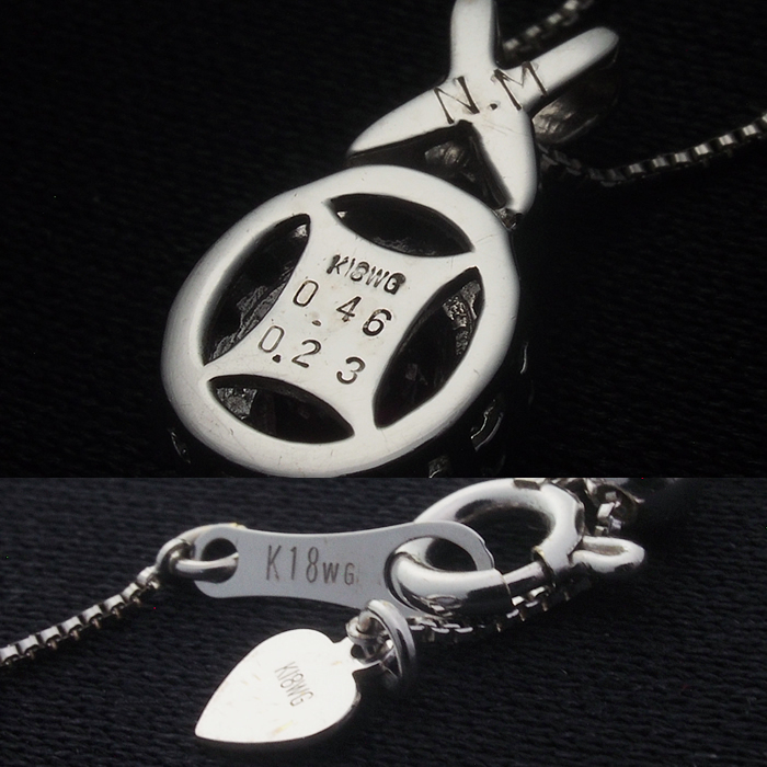 刻印:トップに【K18WG 0.46 0.23】チェーンに【K18WG】