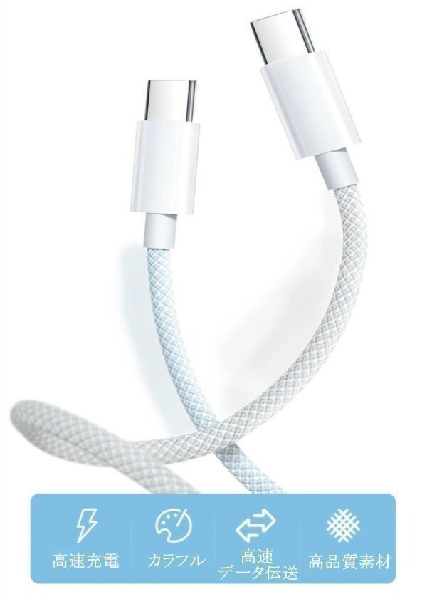 iPhone15シリーズ対応 USB-C to USB-C ケーブル PD対応 60W 3A 急速充電 多機種対応 亜鉛合金採用 ナイロン製 高耐久 頑丈 断線防止 絡まないデザイン TypeC ケーブル データ転送