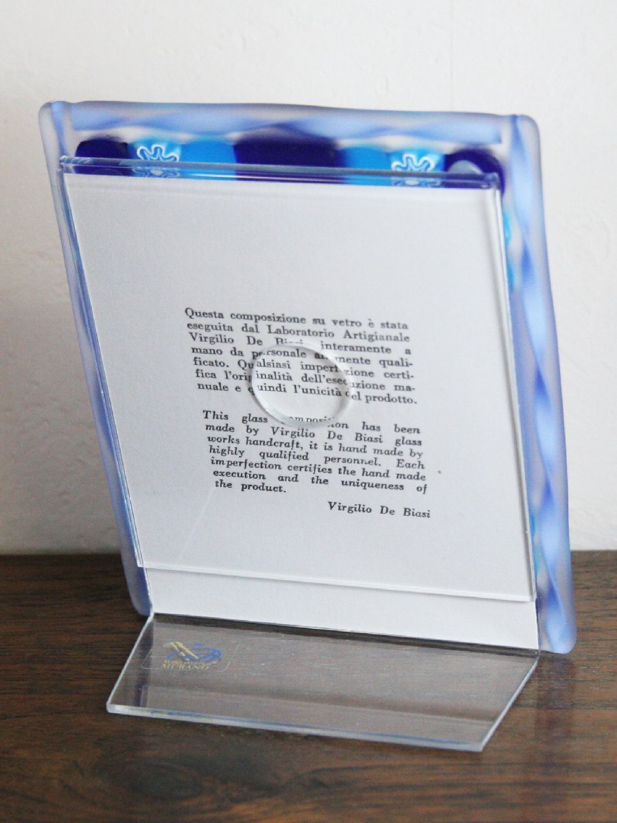 De Biasi社は、60年の歴史において、その経験を活かし、創造性と美術性を持ったマエストロ(ガラス職人)によって、多くの製品を提供し、皆様の思い出を作り続けています。 Virgilio De Biasi氏から始まった家系の伝統は今も引き継がれ、平均12時間以上の時間を掛け、一つの製品が作り出されます。そして、その息子たちであるアンドレアとクリスティアーノにより、現代的なベネチアングラスとして、キーである「ファミリーアート」をコンセプトに、個々の顧客が感情や感覚を、それぞれの製品に対し、視覚として意識できるように配慮され製品化しています。