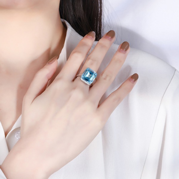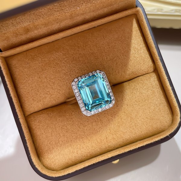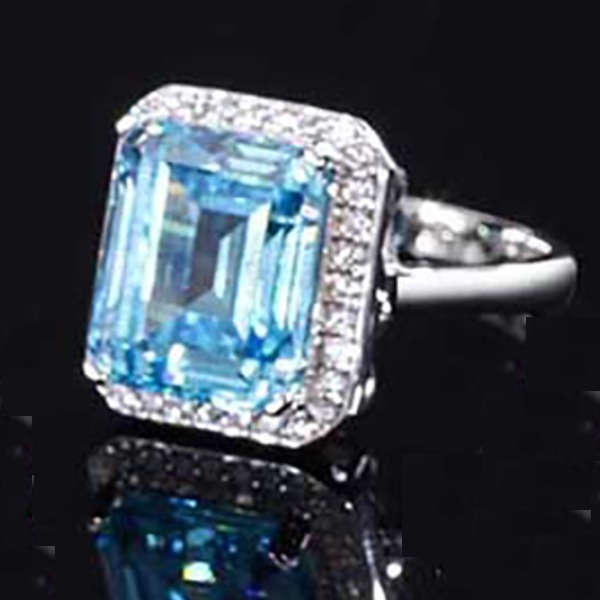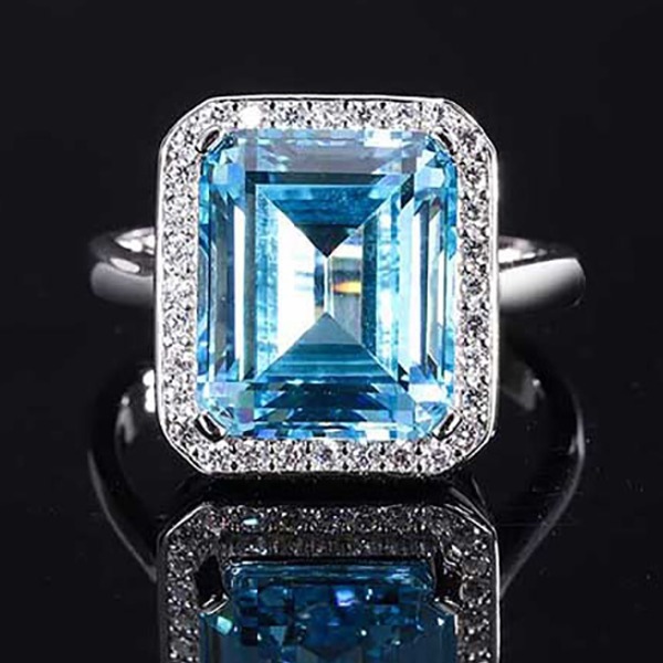 925シルバー10*12mmアクアマリンリング、女性チャームウェディングパーティー、ファインジュエリー