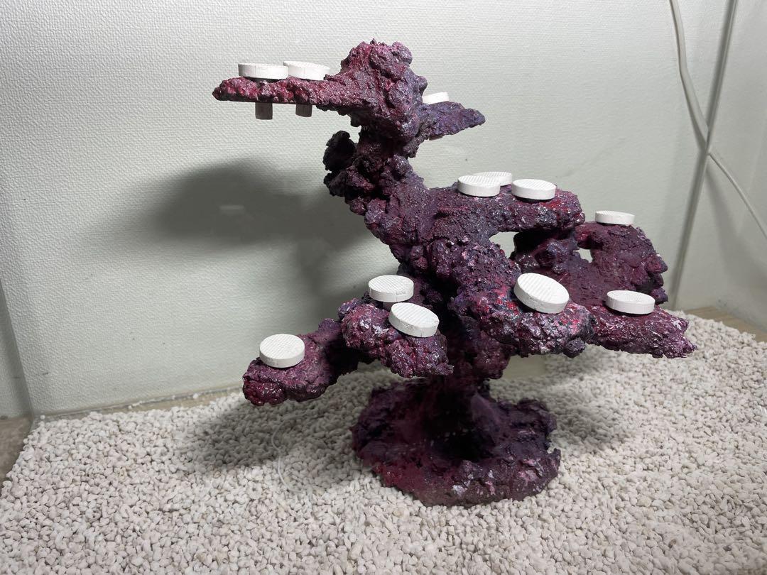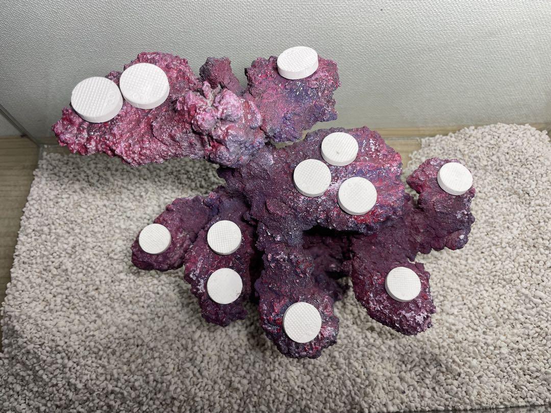 ◇パープル系塗装、赤系メインの石灰藻カラーで仕上げています。LPS飼育などの青系ライトメインの場合、色が同化する場合があります。