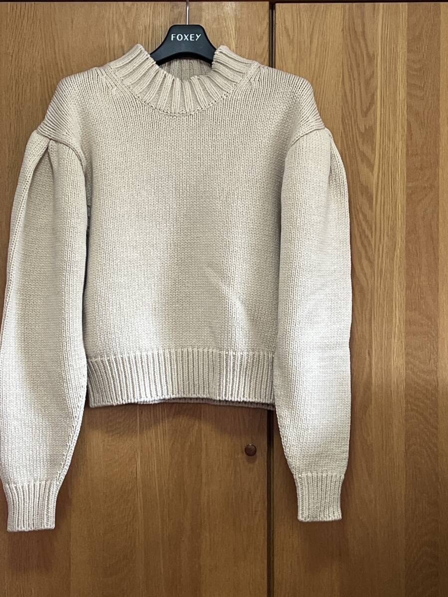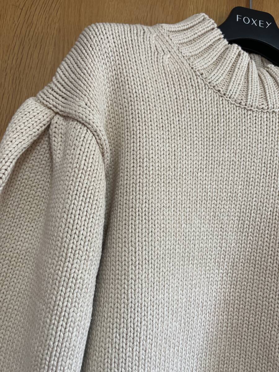 セブンテンのローゲージセーター、コットン素材です。袖山にはタックがとられており、ふわっと膨らむかんじです。