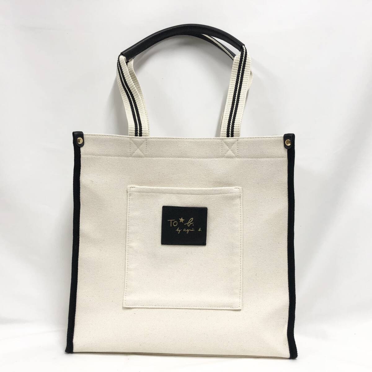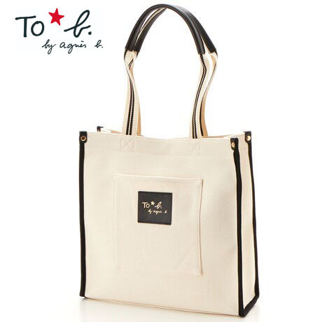 ○★訳有り 新品未使用 To b. by agnes b. スクエアレザーネームトートバッグ ホワイト★○