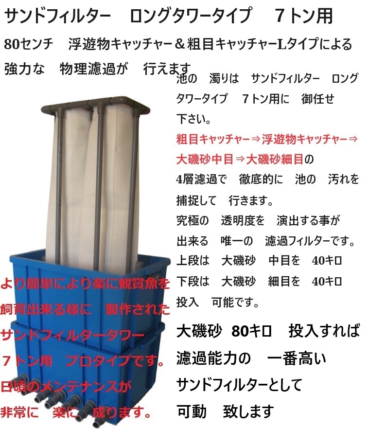 サンドフィルター タワータイプは 既存の 濾過フィルターとは 全く 異なり
