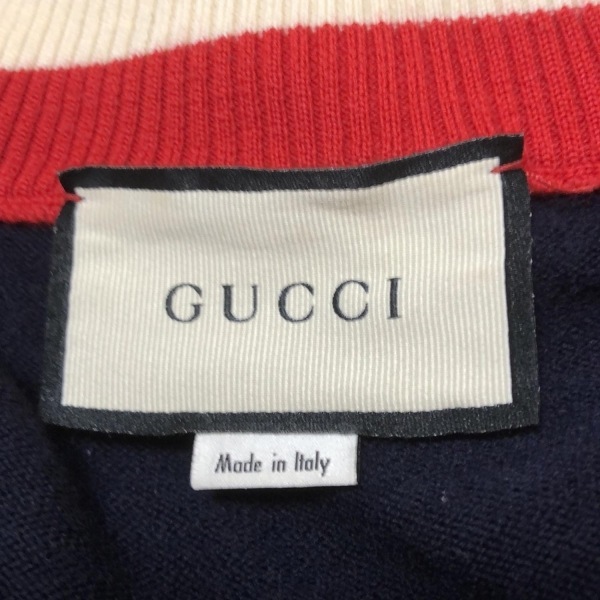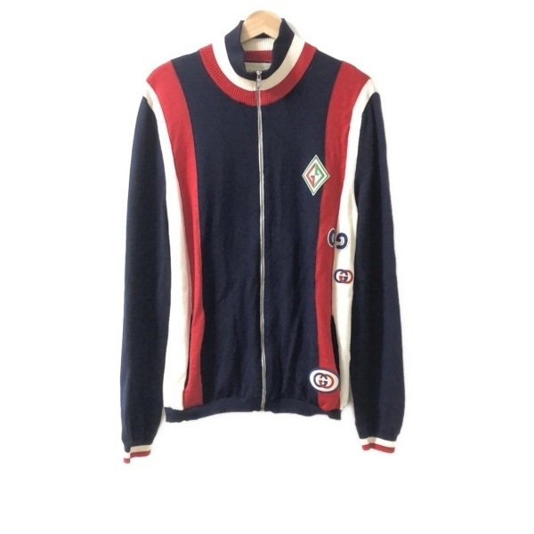 グッチ GUCCI ブルゾン サイズL 576892 アイボリー×ネイビー×レッド メンズ ニット/ジップアップ/春/秋 ジャケット
