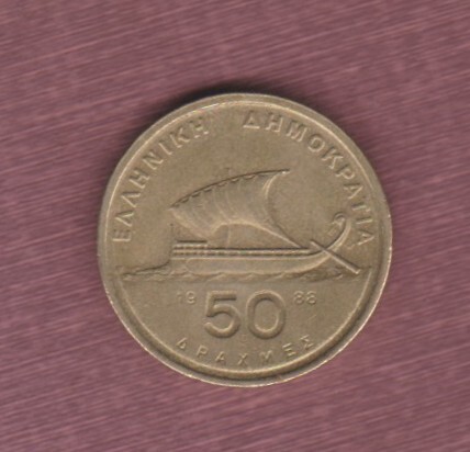 ■ギリシャ■1988年50ドラクマ・アルミニウム青銅貨