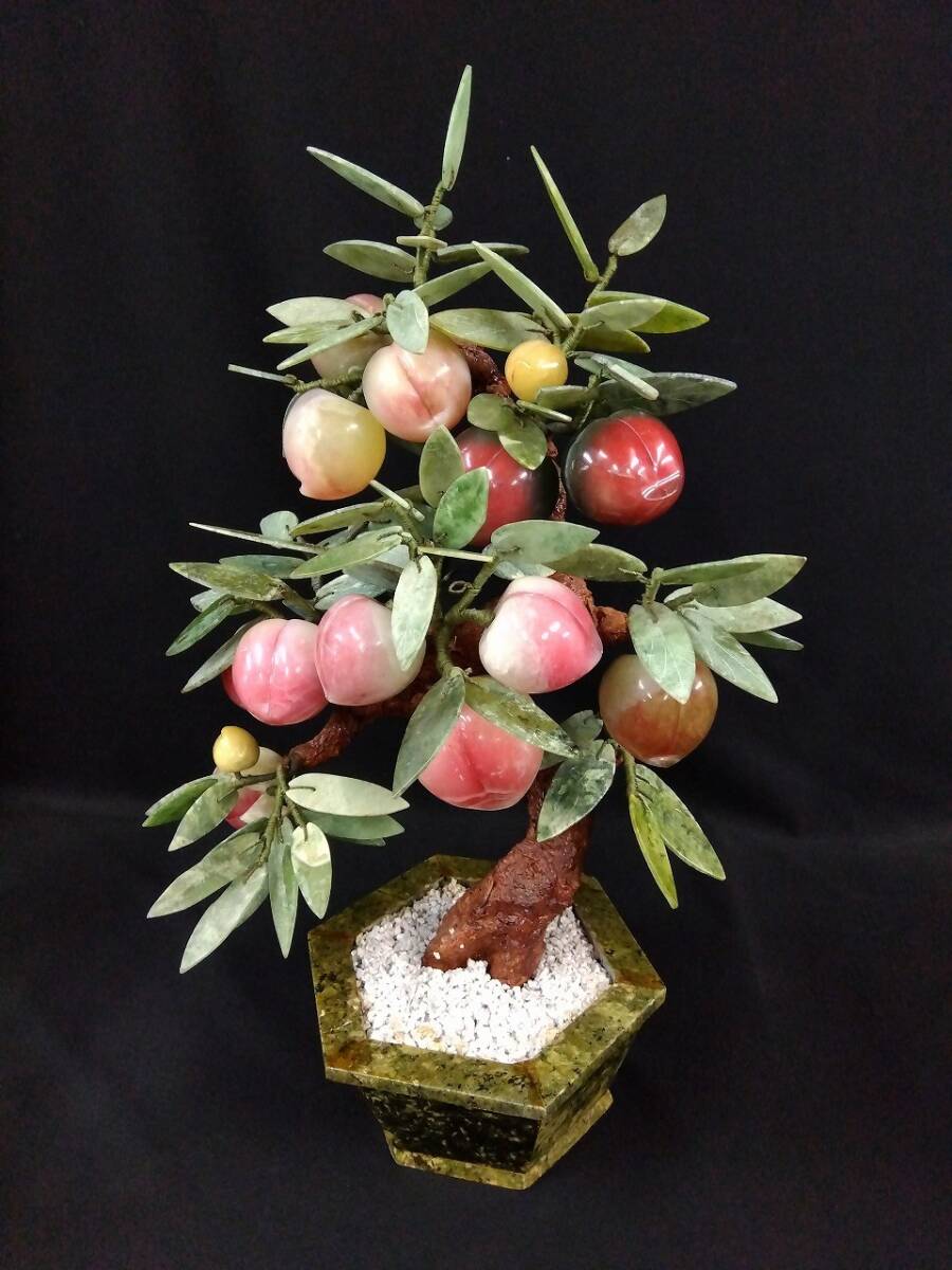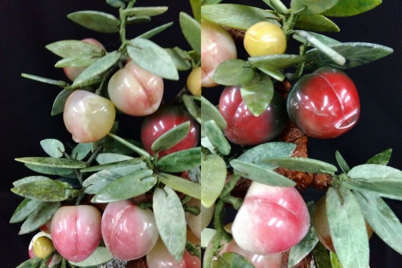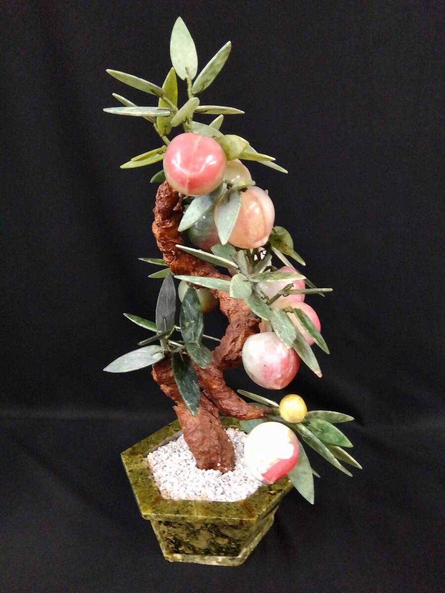 商品名・翡翠玉石彫刻 桃の木盆栽